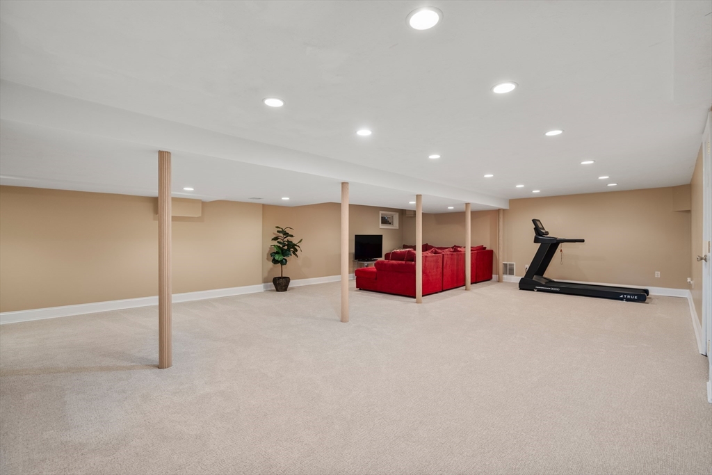 Set on a quiet cul-de-sac in a highly desirable neighborhood, this stunning Colonial offers exceptional space and design. A two-story rear addition transformed home, creating an expansive chef's kitchen with custom Scandia cabinetry, professional-grade appliances, generous storage, and an oversized island perfect for entertaining . The kitchen flows into a bright 3-season sunroom overlooking the 2-tiered private yard. The main level also features a front-to-back living room, formal dining room, dramatic family room with cathedral ceiling, and a custom bar. A rear staircase leads to a versatile suite over the garage with a finished room, full bath, and office—ideal for guests, teens, or in-laws. Four bedrooms upstairs, including a luxurious primary suite with four closets showcasing brand-new spa-like bath with an oversized shower, soaking tub, heated floor, and premium finishes. A finished lower level, deck, stone patio, fieldstone seating area, and private two-level backyard.