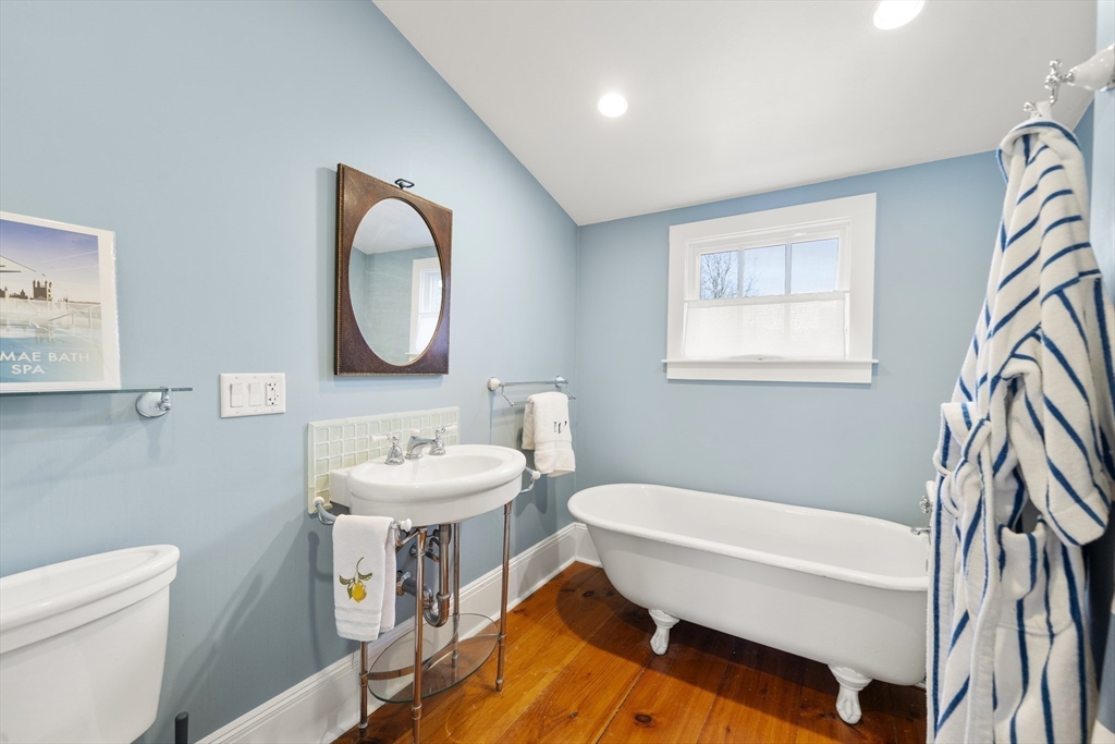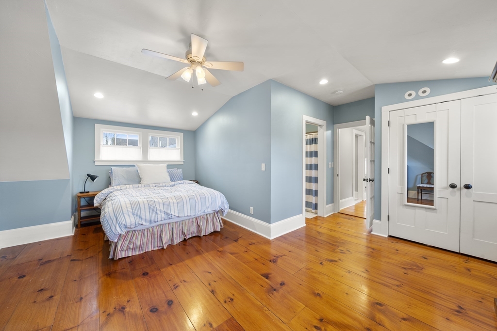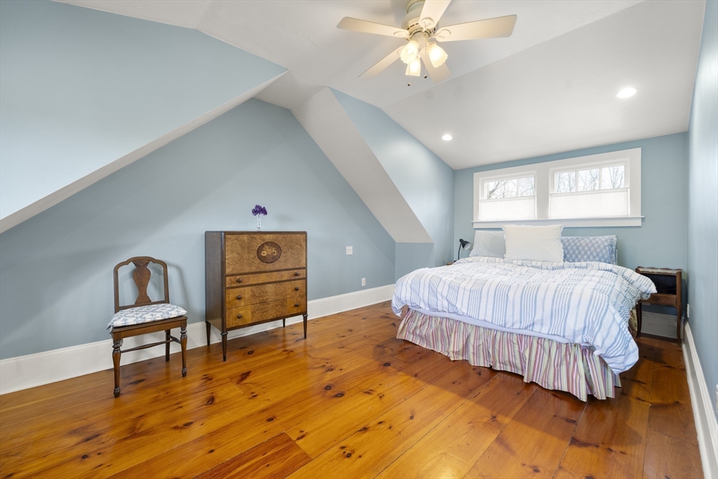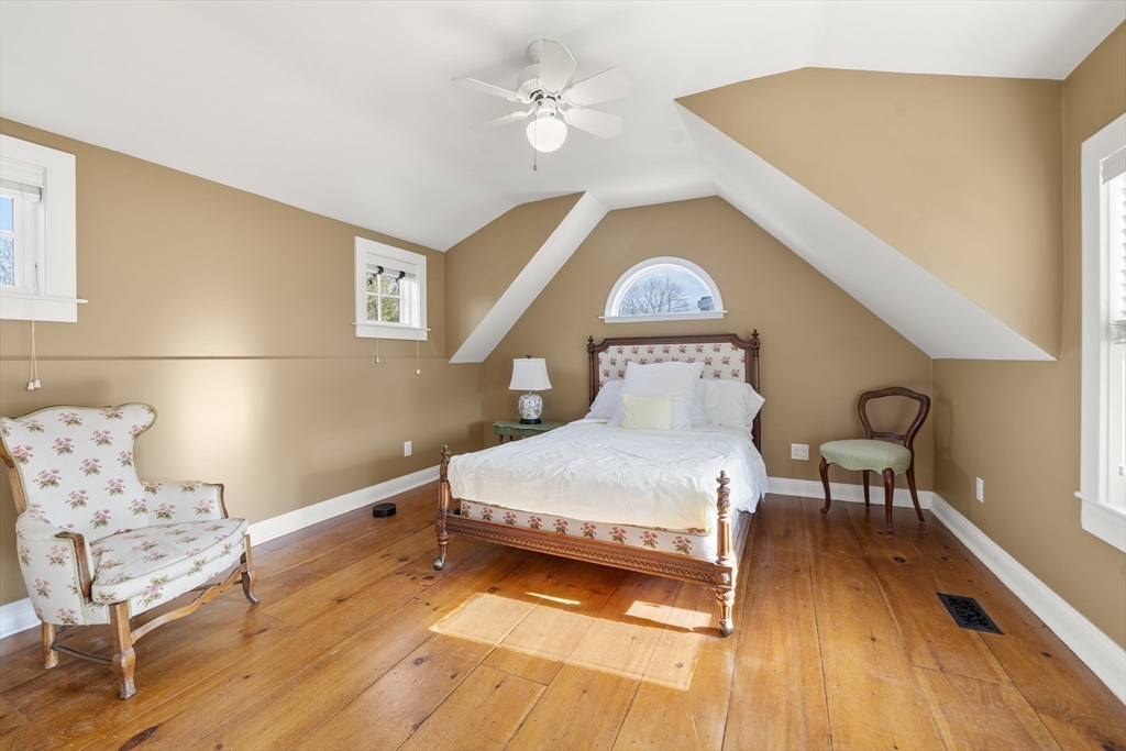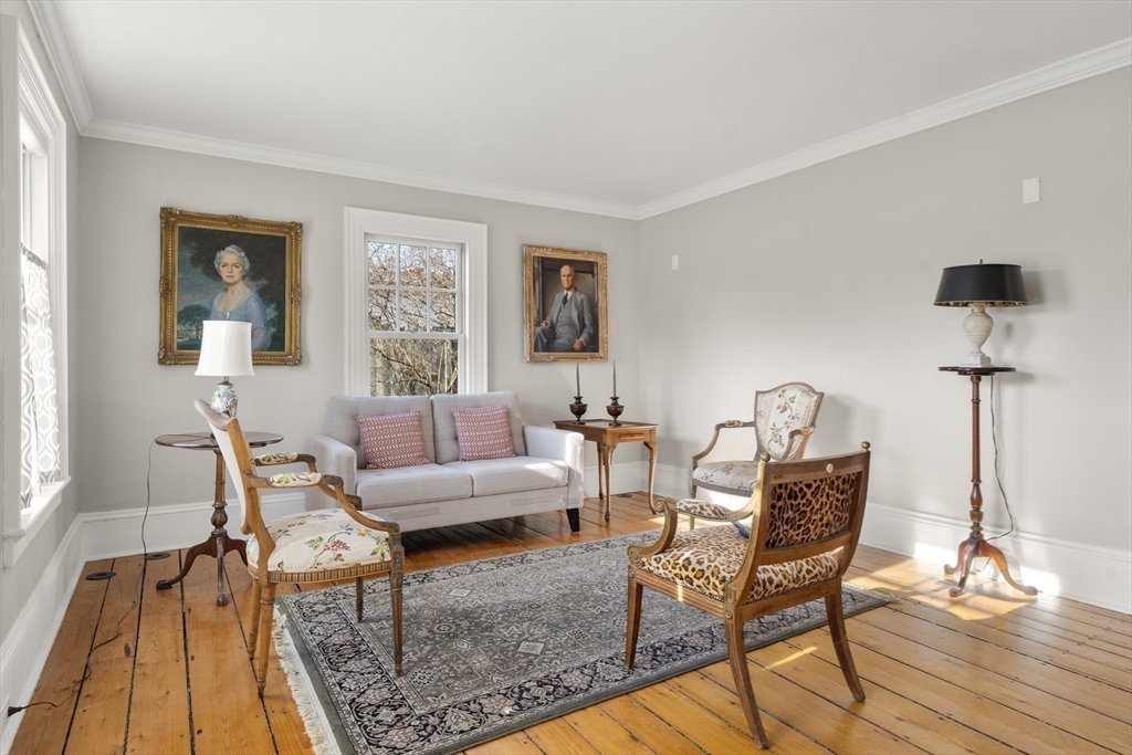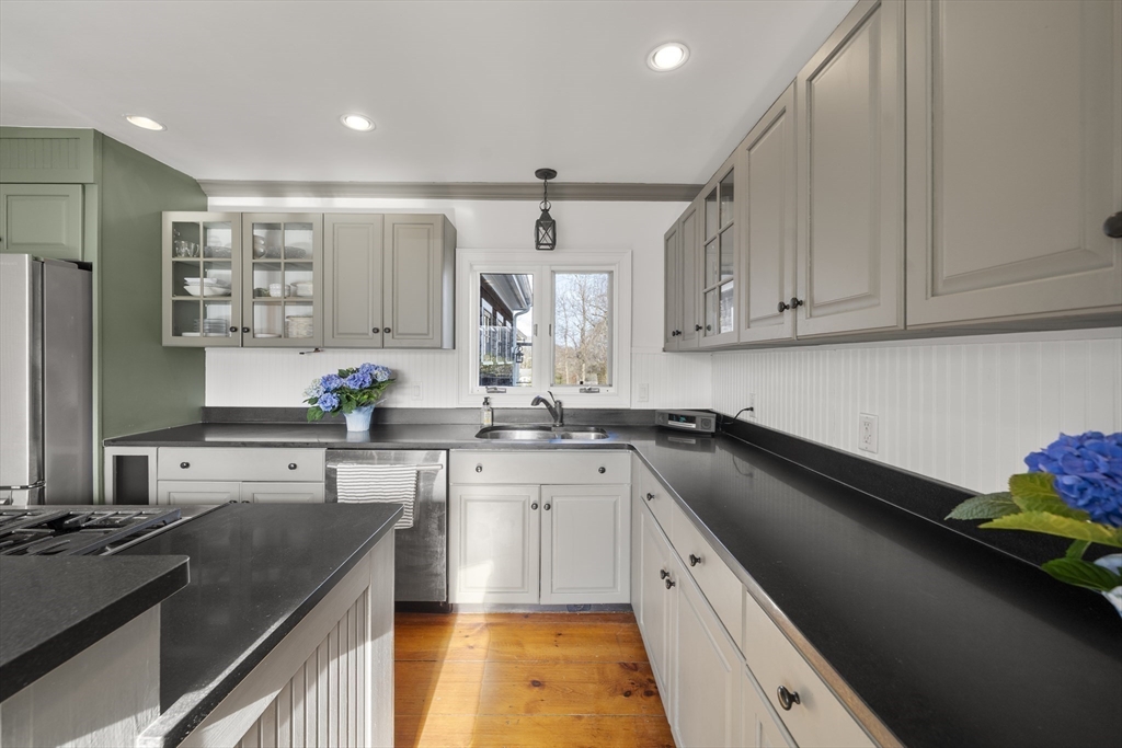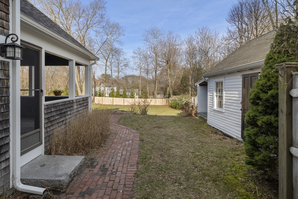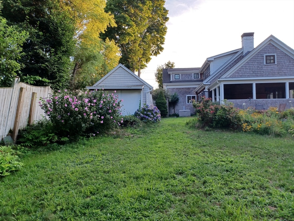 Charming colonial farm house built in 1900 with many modern updates in prime Duxbury village location at Hall’s Corner. Walk to grocery store, restaurants & town shops. 4 bedrooms, 3 full baths, high ceilings & wide pine floors throughout. A 2 story addition in 2007 added a second floor primary bedroom suite & a first floor step down oversize family room with floor to ceiling fieldstone fireplace with beautiful windows, moldings & built in bookshelves, perfect for large family gatherings! French doors from the family room lead to a cathedral covered three season porch with its own brick fireplace, overlooking the beautiful back yard with stone wall garden, brick patio, & mature plantings. Sunny kitchen with granite countertops, & a Jenn-Air six burner commercial oven. Separate Dining Room, & first floor office/den. Also has two zoned central air, & a Kohler whole house generator. The 5 bedroom septic system offers expansion possibilities through the existing shed or separate ADU.