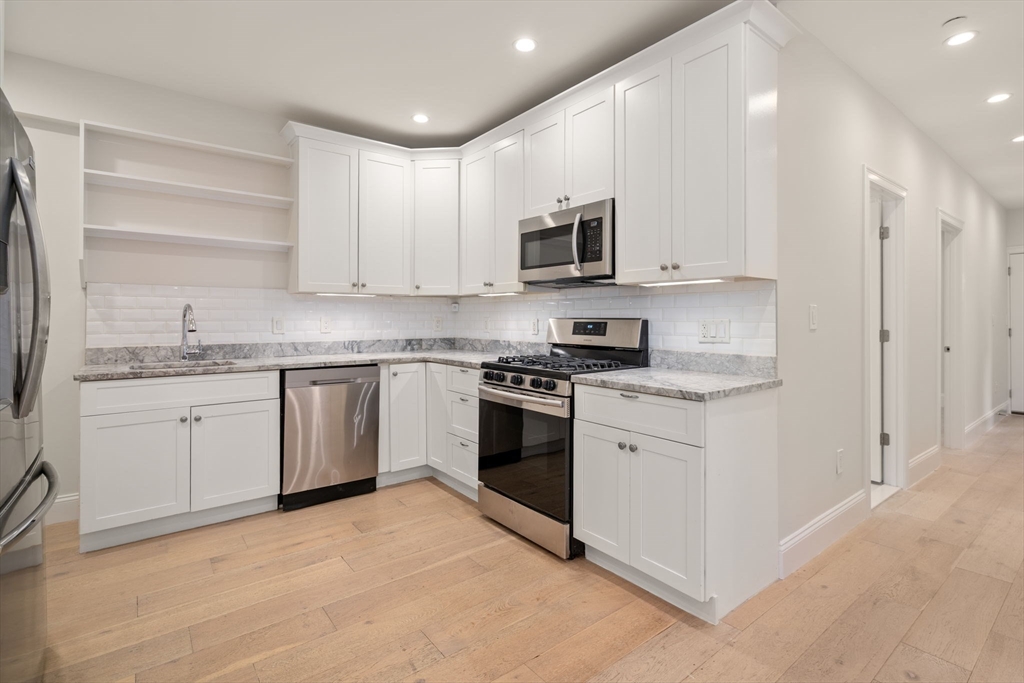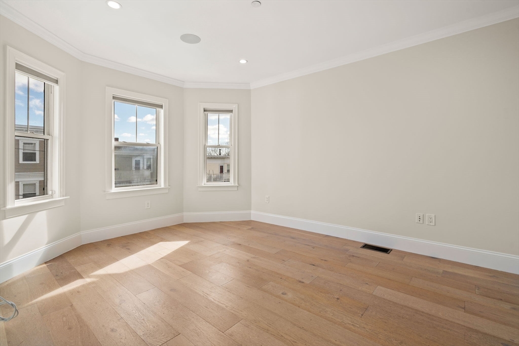 Stunning 2 bed, 2 bath floor-through condominium part of a beautifully renovated 2017 triple-decker in Dorchester’s highly sought-after Jones Hill neighborhood. Open-concept living, dining, and kitchen layout with hardwood floors throughout, and in-ceiling Bluetooth audio in every room perfect for modern living and entertaining.The well-appointed kitchen features custom cabinetry, stainless steel appliances, under-cabinet lighting, gray and white granite countertops, and a large pantry with in-unit washer and dryer. The expansive primary suite includes multiple closets with custom built-ins and a private en-suite bath, while additional basement storage adds everyday convenience. Step outside to enjoy a huge private backyard, a rare and exceptional outdoor retreat ideal for relaxing, entertaining, or gardening. Ideally located just minutes from I-93, the Savin Hill T Station, neighborhood shops and restaurants, this home offers the perfect blend of comfort, and city convenience.