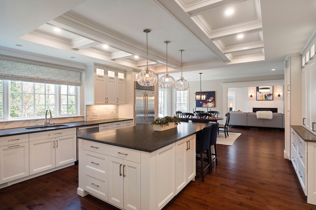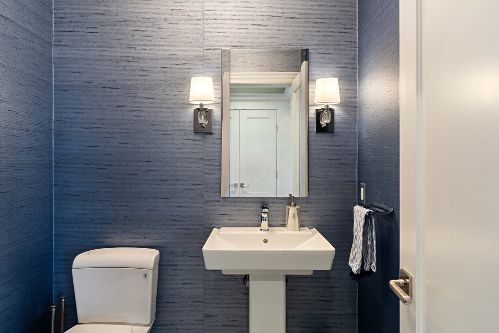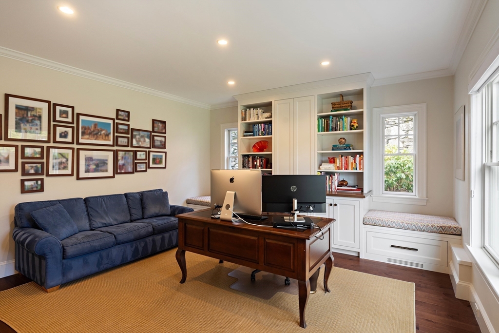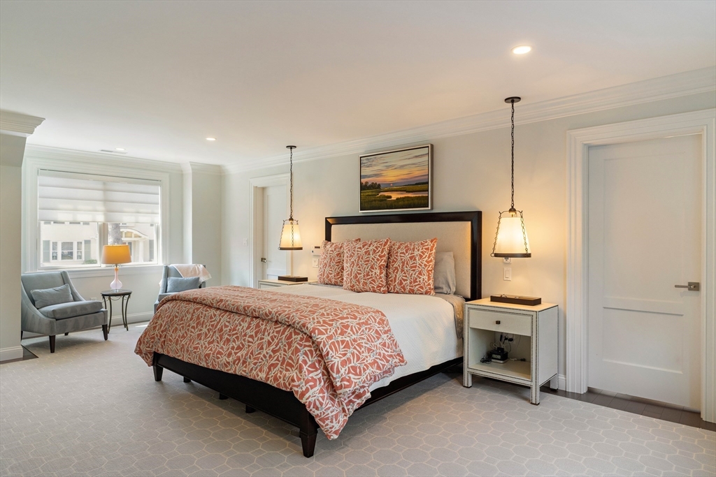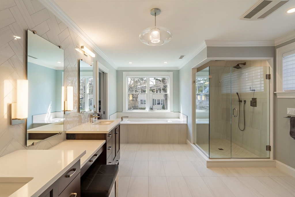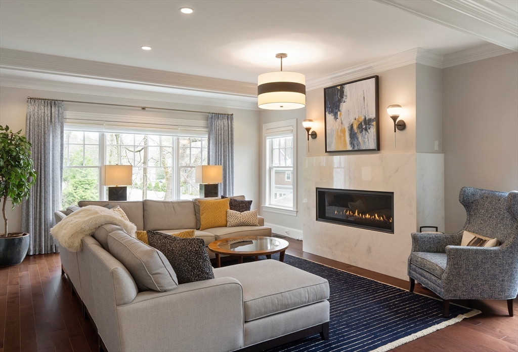 No detail has been overlooked in this exquisite architect-designed home on a manicured .47-acre in the heart of Newton Centre. A state-of-the-art Tesla solar energy system supplies over 50% of net annual electrical usage. Airy living & entertaining spaces define the main level where custom moldings, a stunning chef’s kitchen, and family room with marble fireplace overlook the expansive yard and bluestone patio. Enjoy an elegant living room, formal dining room w/ butler’s pantry, office/bedroom w/ custom built-ins and full bath, powder room, and mudroom with access to a heated 3-car garage. Upstairs, savor a gracious primary suite w/ gas fireplace, two custom dressing rooms and well-appointed bath. Four additional bedrooms with three en suite baths and a spacious laundry room grace this level. Lower level and third floor hold significant potential for additional finished space. Ideally located a block from Newton Centre T, shops and restaurants, with easy access to Boston.