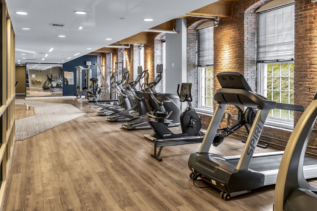 Experience the ultimate industrial living at the Waterfront Lofts at Boott Mills. This stunning unit perfectly balances historic character with modern luxury, featuring soaring 14-foot ceilings, original timber beams, and expansive windows that flood the space with natural light. The open-concept layout is anchored by a chef’s kitchen with granite countertops and stainless steel appliances, flowing seamlessly into a living area defined by the exposed brick walls. Enjoy premium building amenities, including a fitness center, a resident lounge/game room, and a spectacular rooftop terrace with panoramic views of the Merrimack River. Located in the heart of the Lowell National Historical Park, you are steps from the Tsongas Center, Boarding House Park, and downtown’s vibrant dining scene. The HOA fee includes heat, AC, gas, and water, offering effortless city living. Commuter-friendly with easy access to the MBTA and major highways. A rare opportunity to own a piece of history.