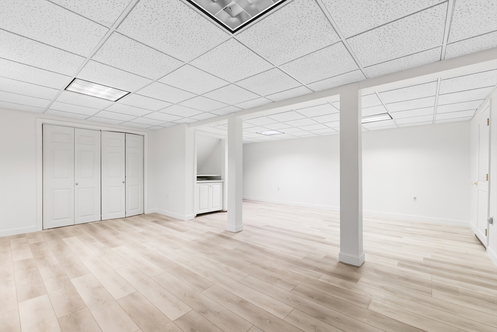 This home will check every single box on your list! Perfect turnkey 4-bed colonial home on a quiet neighborhood street with a stunning backyard, featuring outdoor entertaining area and beautiful landscaping/garden area w /irrigation. The first floor is home to a lovely updated kitchen/eat-in combo with newly painted cabinets and all new kitchen appliances. Additionally on the main level you will find a formal dining room, living room, powder room, and fabulous rustic fire-placed family room with gorgeous beams and slider to the back patio. Upstairs is the generously-sized primary suite with walk-in closet, plus three additional bedrooms and bathroom. The basement is a perfect bonus space for play room, gym, etc. Laundry and additional storage space complete the lower level. The attached two-car garage is freshly painted and includes an electric-charger. A peaceful street in a fabulous location close to schools, shops, restaurants, and easy commuter routes. Do not miss out on this one!