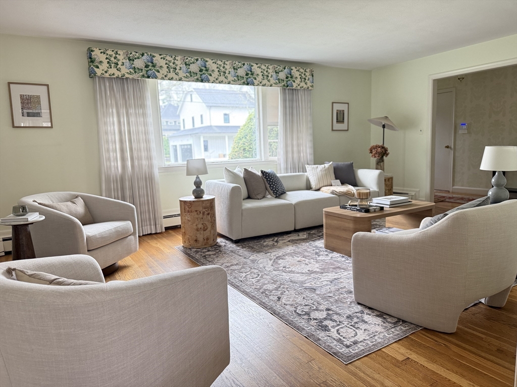 Discover the charm and convenience of single-level living in the heart of Waban Square! This inviting south-facing 7-room ranch offers 3 well proportioned bedrooms and 2 full baths, all set on an impressive 15,000 sq ft flat lot surrounded by beautiful newer homes. Eat-in kitchen with easy access to the backyard—perfect for everyday living and entertaining. The sun-filled living room features a fireplace, hardwood floors, and a large picture window all flowing seamlessly into the dining room. The den/office overlooks the backyard and provides direct access to the attached two-car garage, adding both comfort and convenience. Ideally located just minutes from shops, dining, top-rated schools, and public transportation, with quick access to major routes to help ease the commute. A fantastic opportunity for end users. Bring your design and vision to a coveted home and neighborhood. If development is what you are seeking, this property has both the land and location to offer!