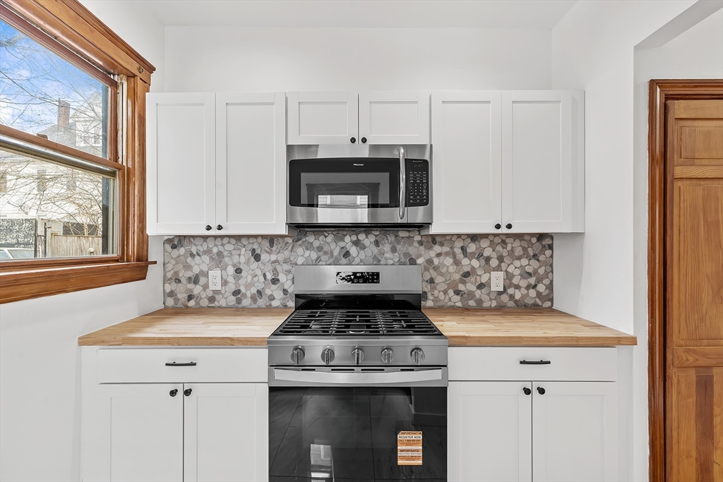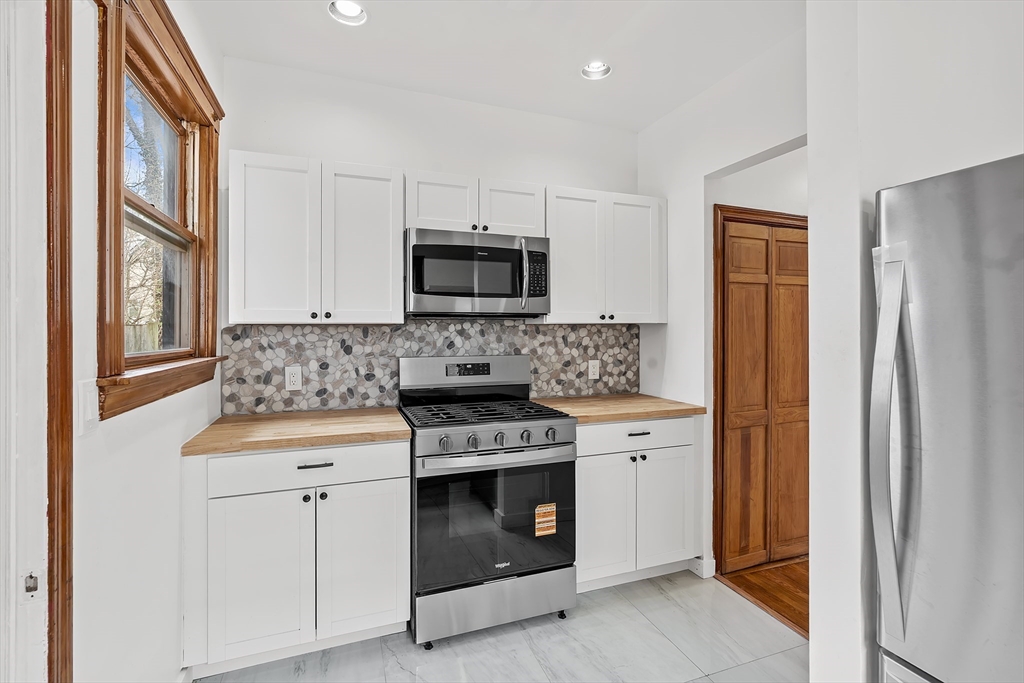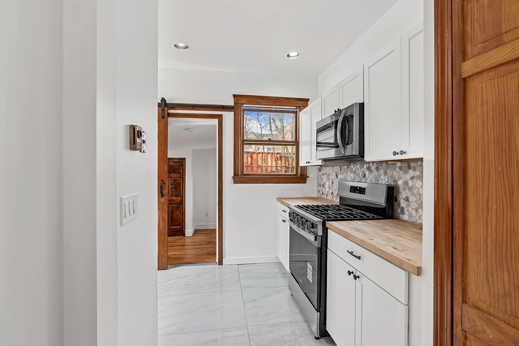 New to the market! Welcome to 181-183 Lamartine St, Unit 1, a beautifully renovated condo in an unbeatable Jamaica Plain location. Directly across from Stony Brook station and Southwest Corridor Park, enjoy immediate access to bike and jogging paths, tennis courts, children’s play areas, and nearby community gardens. Just a half mile to JP Center with a Walk Score of 88, this home offers exceptional city convenience. Inside features a sun-filled, spacious living and dining area with high ceilings, recessed lighting, and original wood floors. The fully renovated kitchen offers new appliances, a 5-burner gas stove, built-in microwave with vent, stone backsplash, butcher block countertops, and tile flooring. A stylish barn door, slate entryway, keyless exterior locks, and a beautifully updated bath with new fixtures and stone accent wall add charm and modern appeal. Step outside to enjoy the yard, it serves as the perfect urban getaway. Ideal for relaxing, entertaining and gardening.