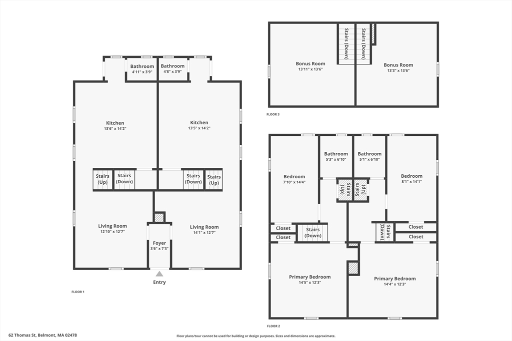 Rarely available, turnkey duplex-style two-family situated right outside Belmont Center. Both units feature a living room, large kitchen and half bath on the lower floor, two bedrooms and full bath on the middle, and a 3rd bedroom on the upper level. Conveniently located around the corner from Town Field, this property is walking distance to Wellington, Belmont Center commuter rail stop and Harvard Sq bus line, and the new library and skating rink. The property boasts two separate driveways (one car garage) and a large grassy backyard for entertaining. Separate utilities (gas, electric & water) and many updates complete this lovely home. Rent out each unit or owner occupy one unit and rent out the other to generate income.