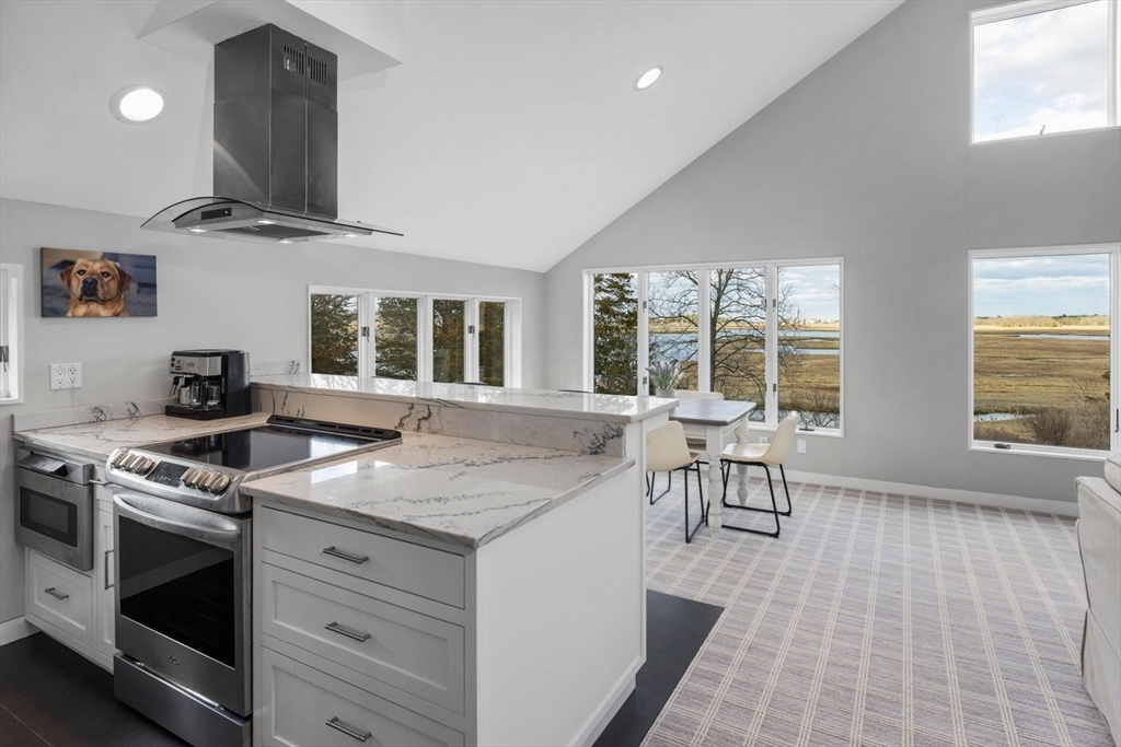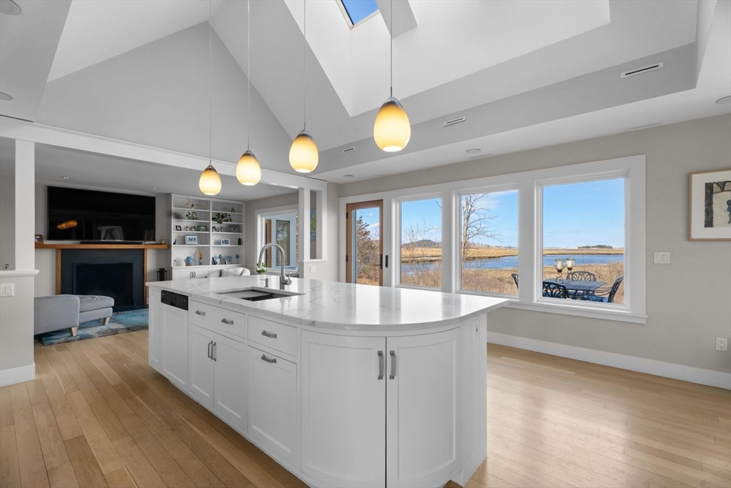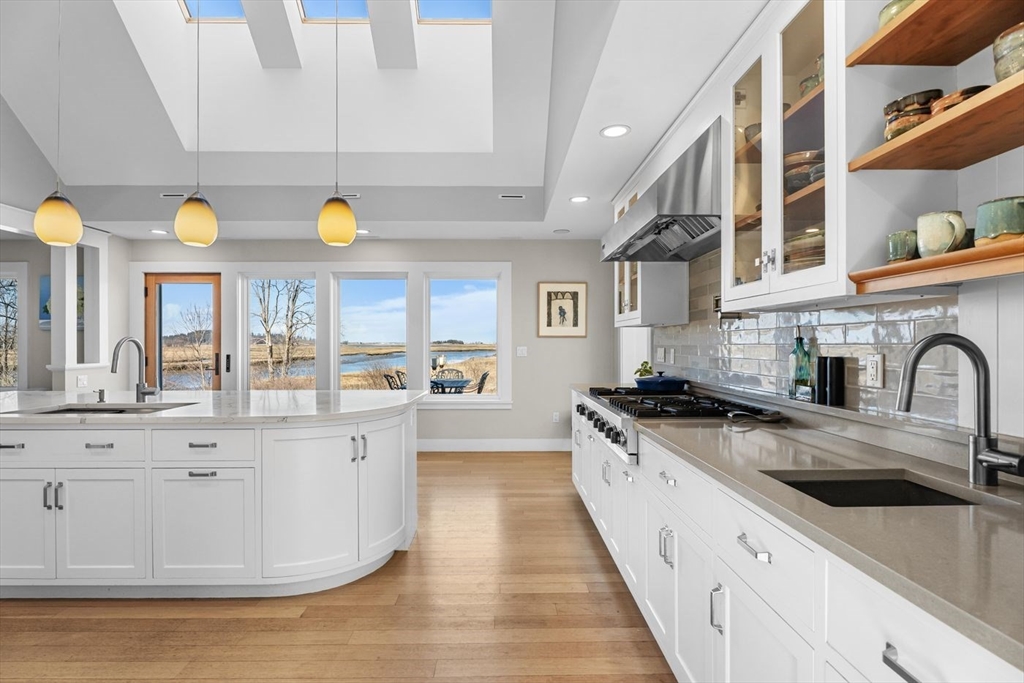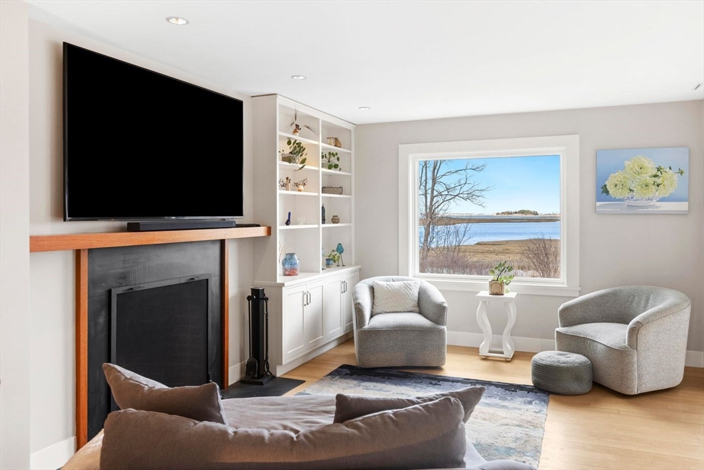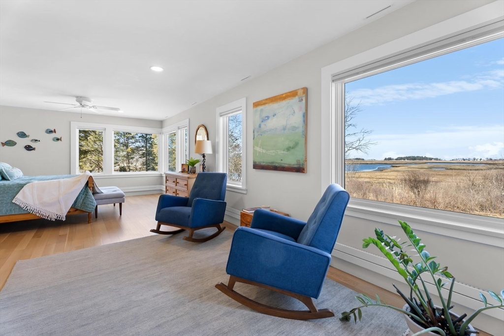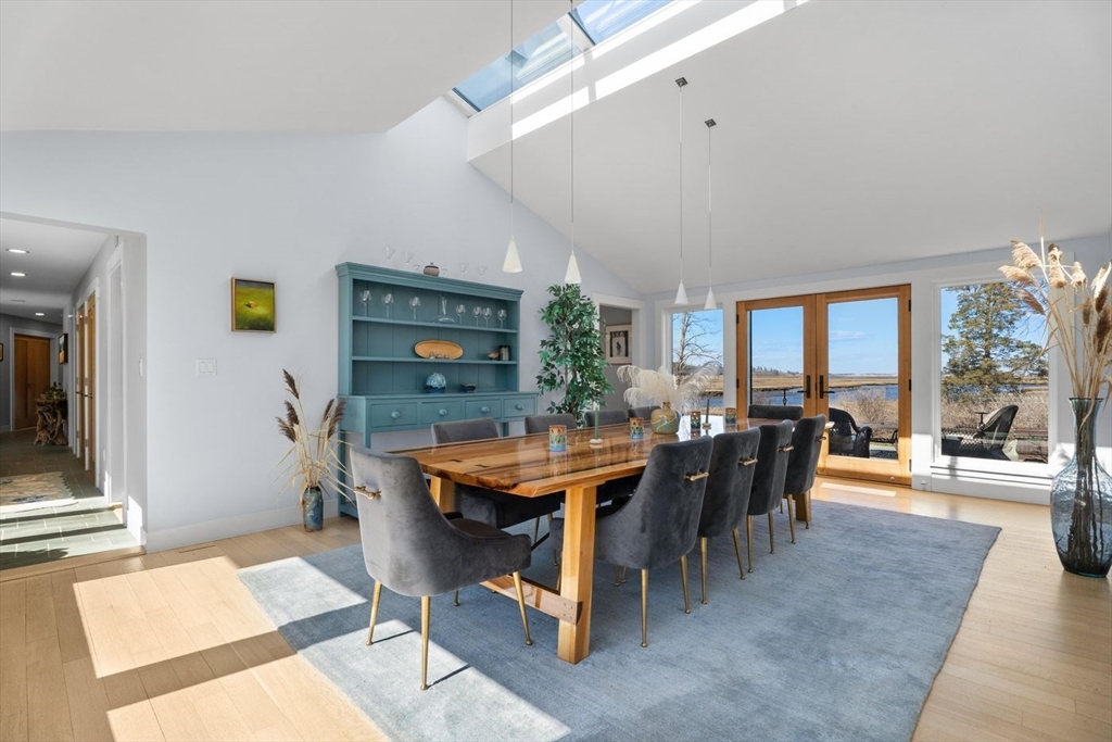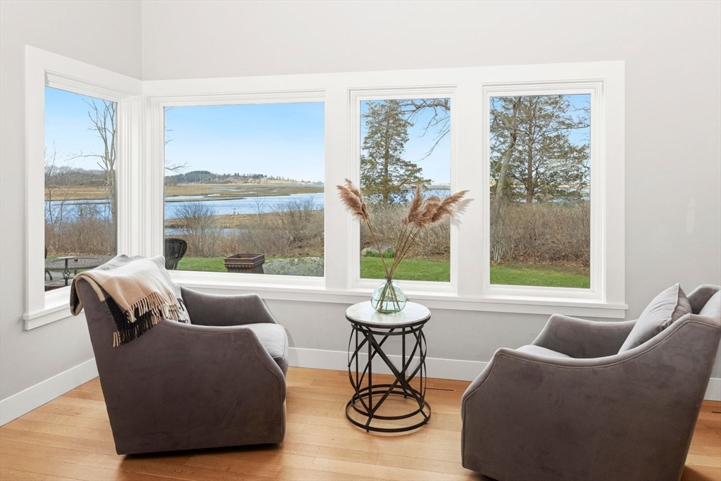 “Rivers Edge” a 4.6± acre waterfront estate offers 400' of frontage along the Essex River with sweeping panoramic views of the river, marsh, Crane Beach, Choate Island, and beyond. Abutting conservation land, the Cox Reservation, and across the river to the 165-acre Cogswell’s Grant, the setting provides privacy and permanently preserved natural beauty. The property offers a custom-designed 2002 Contemporary-style main residence with views from nearly every room, a separate three-bedroom guest house with elevated views of the marsh, and a substantial two-story barn/garage with scale and versatility for vehicles, boats, animals or workshop use. Walls of glass, vaulted wood-paneled ceilings, stone and natural materials create an interior that feels deeply connected to the outdoors. Notably, the residences are sited outside the flood zone—an uncommon distinction along the coast. Surrounded by nature, this bucolic property feels remote but is just minutes from the quaint village of Essex.