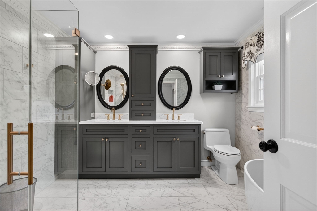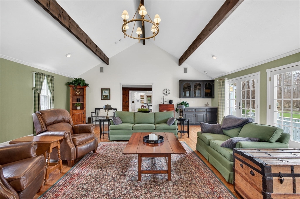 Luxury Andover home set on a fabulous private lot with Gunite pool, pool bath, and cul-de-sac location in the High Plain/Wood Hill School District. Over 6,000 sf of living space, including in-law potential with a separate entrance, this home is designed for both comfort and entertaining. The main level features 2 private home offices, an oversized eat-in kitchen with large center island and access to a heated sunroom overlooking the pool and expansive backyard. The family room and dining area with fireplace sit just off the kitchen, along with a formal living room and a dramatic great room with fireplace, cathedral ceilings, and access to the rear deck. Upstairs offers 4 bedrooms and 2 full baths, including a luxurious primary suite with cathedral ceiling, fireplace, and marble bath with soaking tub and glass shower. Finished LL offers playroom, game room, and sauna plus abundant storage. Exceptional updates throughout including efficient hydro air heating complete this stunning home.
