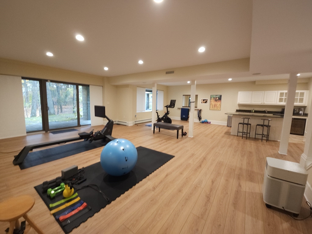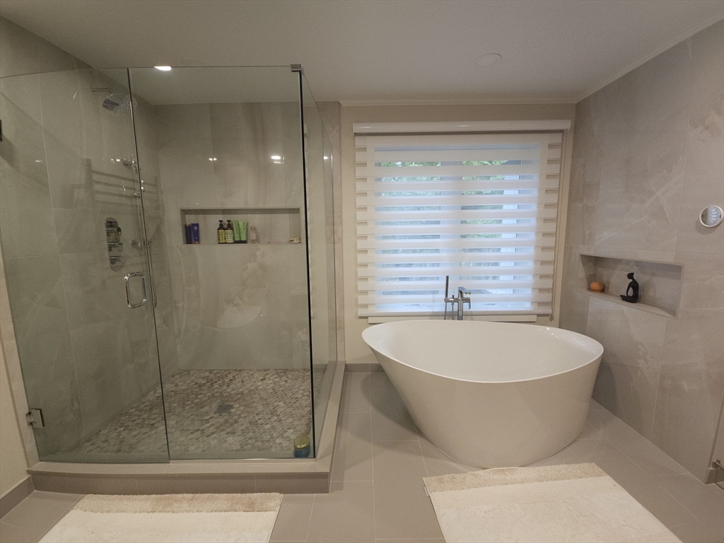 Fully renovated unit in highly sought Ledgebrook Condos, offering 4,793 sq ft of elegant living across 3 levels. Spacious home features 7 rooms, 3 bedrms and 4.5 baths including luxurious 1st floor primary suite with walk-in closet and sliding doors that opens to a private wraparound deck. Also, on main level, there is office, stunning living room with soaring vaulted ceilings, modern gas fireplace, dramatic floor-to-ceiling windows, and formal dining room. Eat-in kitchen provides ample cabinet space, modern Miele appliances. Upstairs includes 2 additional bedrms, 2 full baths, and den. Primary and upstairs baths have heated floors and towel warmers. Sound system on all 3 levels. Finished walk-out lower level has mini kitchen, walk-in pantry, large family/party room, exercise room with built-in sauna and full bath. Detached, oversized two-car garage, clubhouse, pool and tennis courts. Set in one of Newton’s most prestigious communities, this home offers privacy and scenic surroundings.