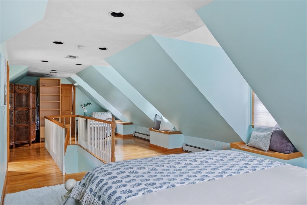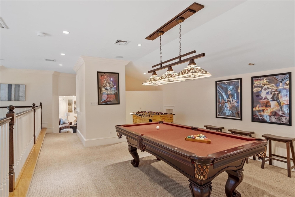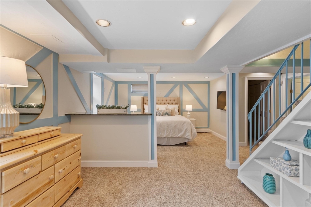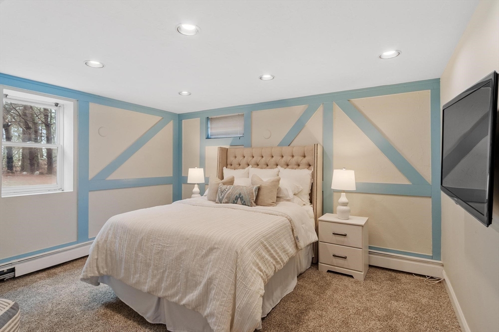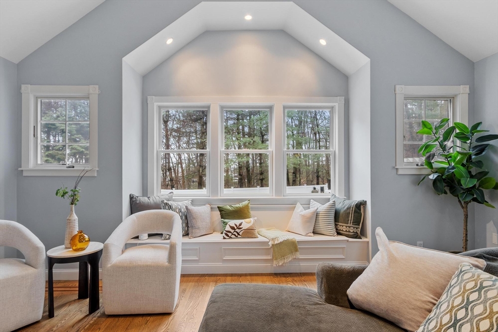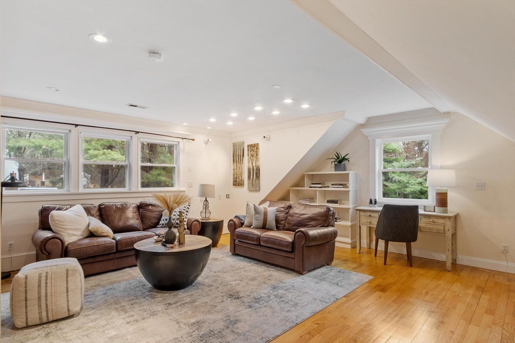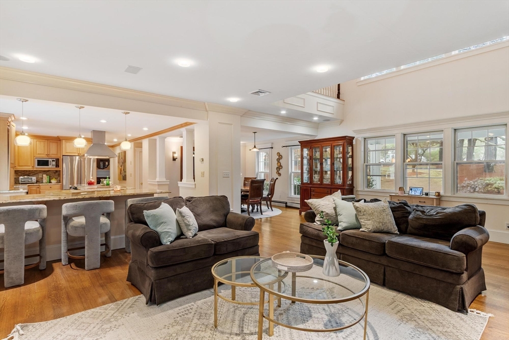 Gorgeous, spacious colonial set on an acre in one of Westwood’s most coveted, quiet, picturesque neighborhoods. Main level offers open kitchen, dining and family room plus formal living room with fireplace. Family room is a true showstopper with soaring ceilings and exceptional natural light. Main-level makes entertaining easy w/ wet bar and seamless indoor-outdoor flow to a large patio, hot tub, inground pool, and poolside deck with pergola. Upstairs features versatile lounge/parlor area with half bath (ideal home office), gaming area, full bath, and 3 generous bedrooms including primary suite with ensuite bath. Third level offers spacious loft bedroom with full bath. Finished LL provides flexible space for media room, playroom, or guest suite w/ full bath and private entrance. Additional highlights: 2-car garage, charming front porch, expansive driveway, irrigation, propane generator, and two fireplaces. Rare opportunity offering space, privacy, and exceptional indoor-outdoor living!