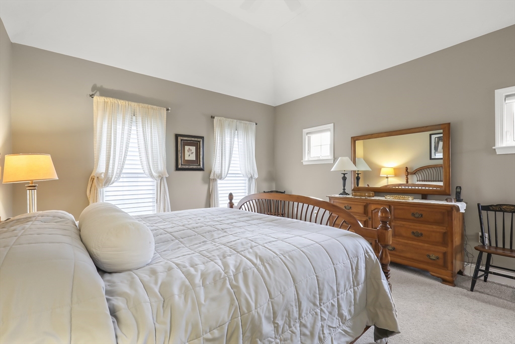 This beautiful Aster is a former Model. Sun drenched w/ sunsets and sweeping view of the 16th hole at Brookside Golf course located in the Links Section of The Villages of Brookside. First floor living at its best! Spacious Primary Bedroom offers a large private bath and 2 closets. Open floor plan with Living room/ Dining room with fireplace. A cozy Den with flexible use.Large eat-in Kitchen with Island and plenty of room for entertaining. Laundry and 1/2 bath in the back hallway with entry to an attached garage that has a polyfusion floor.The 2nd garage is only steps away from Condo. The 2nd floor has an office, loft, large bedroom and a full bath.Buyer to pay 2 mo.Condo Fee to the Capital Reserves at the time of closing The 2nd garage has an electric bill of $17.00 a month