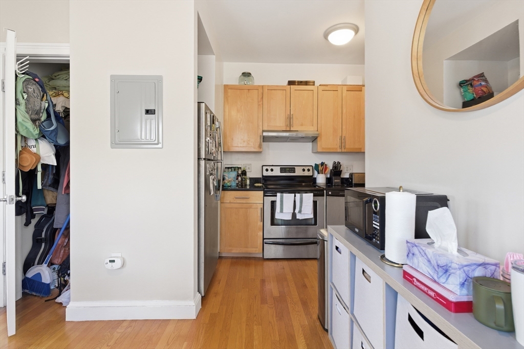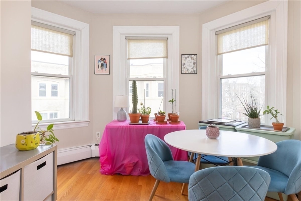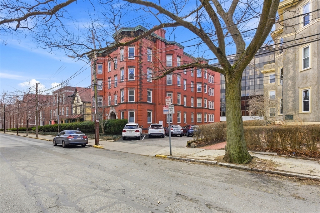 Tucked away on a unique & picturesque side street in the heart of Mid Cambridge, this sunny and spacious condo is well-positioned at the front corner of the third floor. Enter directly into a large living room w/ hardwood floors, high ceilings and tall bay windows overlooking Centre St -- a broad, tree-lined side street that receives uniquely little traffic for the area. The open layout flows elegantly into a separate dining nook, which has another set of bay windows. The updated kitchen features stainless steel appliances and maple cabinets. Comes with one deeded off-street parking space! Condo fee includes heat & hot water. The Ivy at Dana Hill is a professionally managed condo association w/ on-site laundry room and bike storage. Rare opportunity in an impeccable location just moments to Harvard, Central, public transit, Kendall/MIT, museums, parks, shops, fine dining and more! Condo is rented through 6/30/26