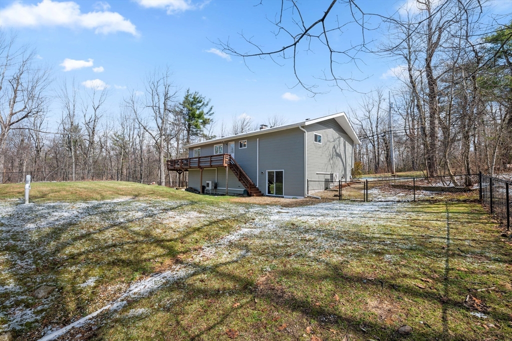 This beautifully maintained property offers comfort, efficiency, and charm on a quiet dead-end road. Recent updates include a young roof, energy-efficient mini splits for heating and cooling, a newer oil tank, and an upgraded 200-amp electrical panel. Step inside to a spacious open-concept living room highlighted by a stunning stone-faced wood-burning fireplace and sliders leading to a wraparound deck—perfect for relaxing or entertaining. The updated kitchen boasts granite countertops and ample cabinetry. With 3 bedrooms and 3 full baths, there’s room for everyone. The finished, walk-out lower level adds flexible living space, complete with a laundry room and sliders to the fenced rear yard. Located near Moore State Park, community events on the common, and offering an easy commute to Worcester, this home blends convenience with a true neighborhood feel - Welcome Home!