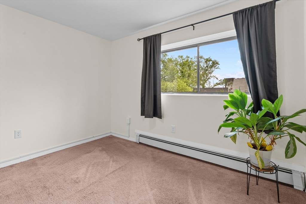 Welcome to this radiant penthouse corner unit, filled with natural sunlight and warmth. The inviting home offers two comfortable bedrooms, a full bathroom, and a spacious private deck—ideal for relaxing mornings with coffee and views of the tree-lined street. Off-street parking (space #39) adds convenience to your daily routine. The updated kitchen features modern appliances, fresh cabinetry, quartz countertops, and an island, all paired with upgraded electrical and plumbing for peace of mind. Cheerful lighting enhances the living room, dining area, and bedrooms. The primary bedroom includes a walk-in closet for easy organization. Waverly Arms provides elevator access, app-based laundry, secure entry, well-kept grounds, and professional management. Located on a tree-lined street near public transit, close to Harvard Square, Boston Landing, Mass Pike, Soldier’s Field Road, plus restaurants and shops.