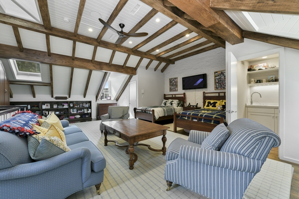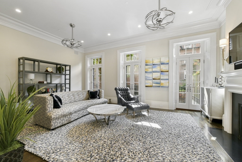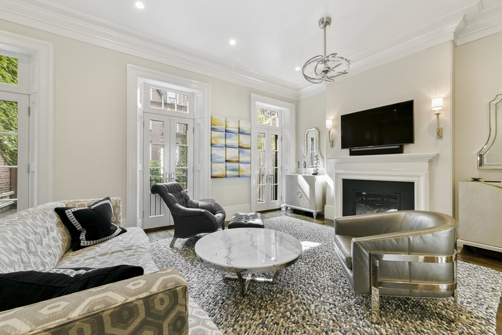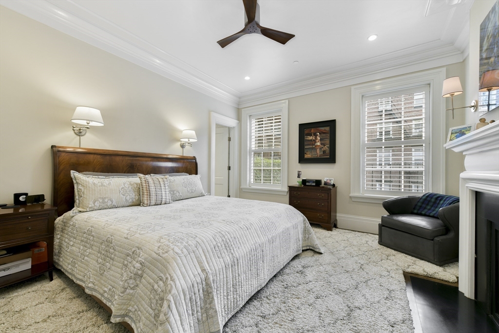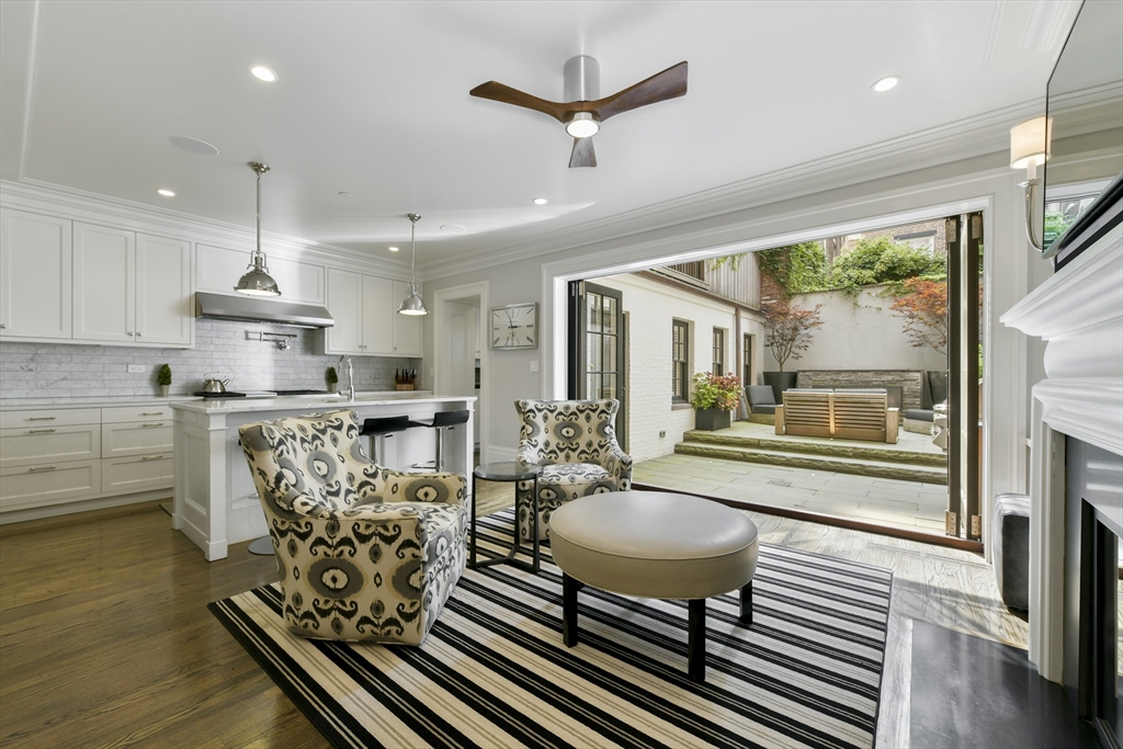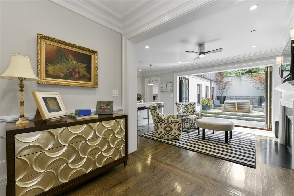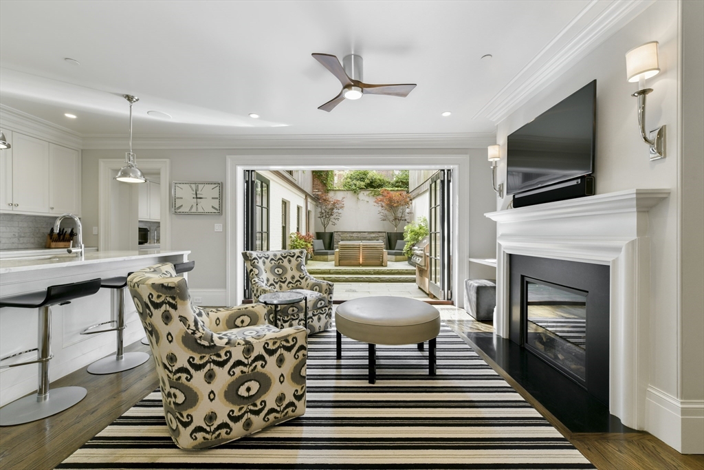 Welcome to 75 Beacon Hill, a beautifully renovated townhouse that epitomizes luxury living in one of Boston's most prestigious neighborhoods. This 24' wide six-level residence features 5 spacious bedrooms, 5 full bathrooms, and 3 half bathrooms, including a private au pair suite. The state-of-the-art kitchen, complete with a butler’s pantry, opens to a cozy family room and a stunning private garden adorned with stone pavers and a gas fireplace—perfect for outdoor gatherings. The elegant parlor level is ideal for entertaining, boasting a full wet bar and access to an inviting outdoor deck and patio. Additional highlights include opulent marble baths, restored fireplaces, a dedicated laundry room, and a top-level entertaining space with soaring ceilings and another wet bar. The basement is finished and designed for ample dry storage and gym with high ceilings. Meticulously designed with the finest craftsmanship, this exceptional home is a true Beacon Hill gem.