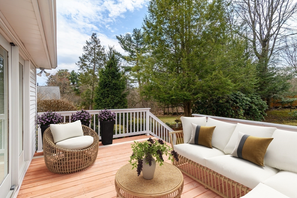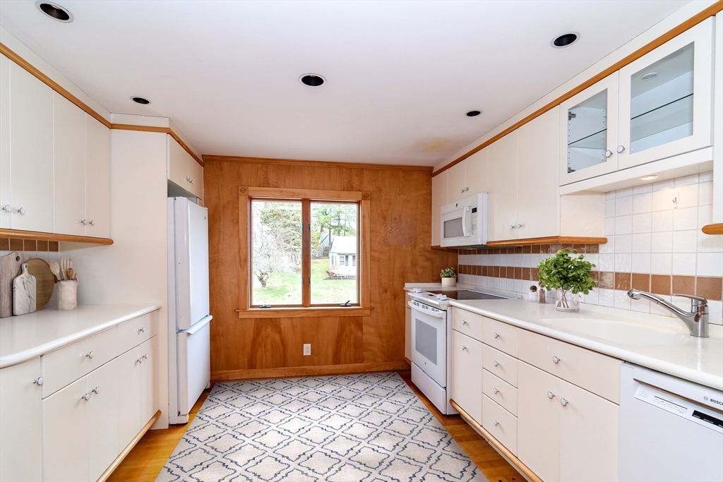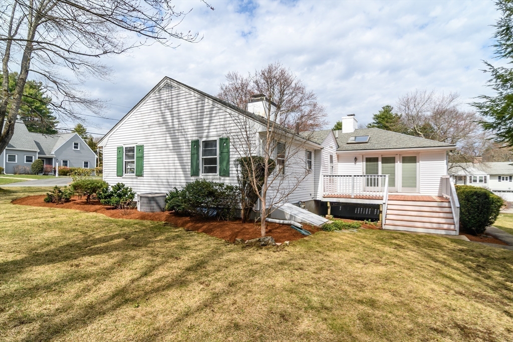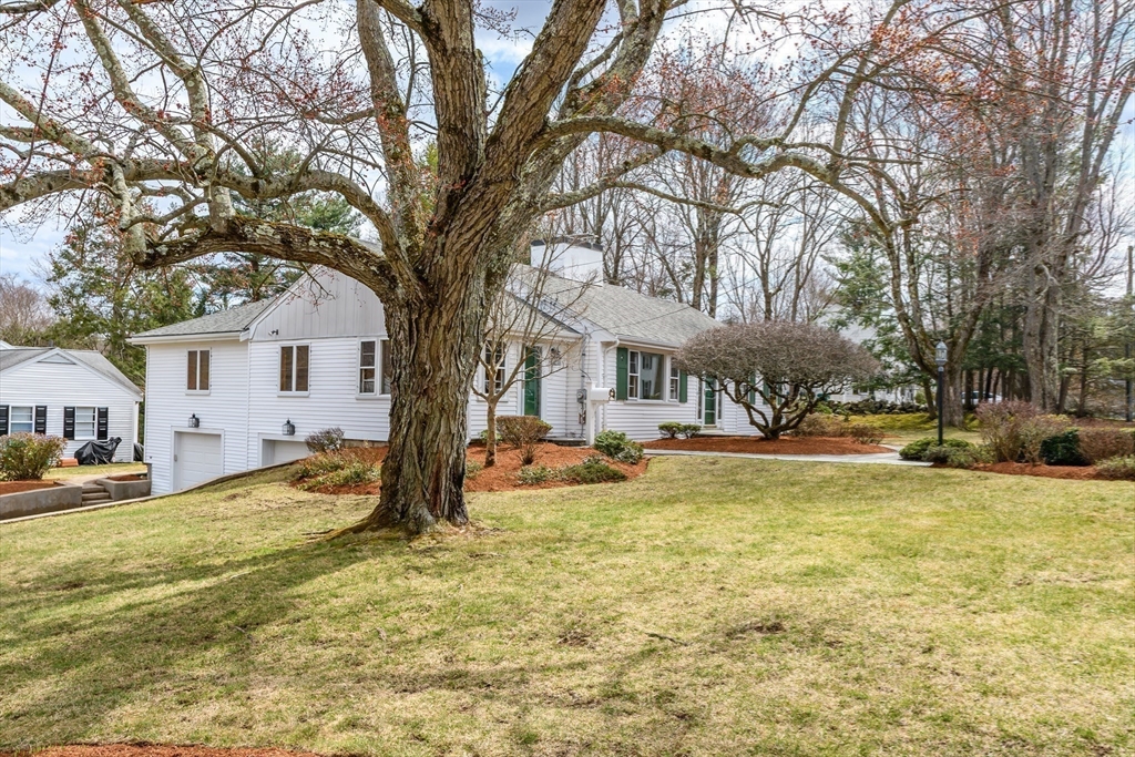 Enjoy convenient one floor living in this proudly maintained Royal Barry Wills inspired Ranch with oversized center chimney set on a lovely 1/3 acre corner lot, just minutes to Westwood Center. A large, expansive living room with fireplace & adjacent dining room opens into a spacious family room addition with fireplace & vaulted ceiling plus a white cabinet kitchen & cozy wood panelled den. The private bedroom wing includes a primary bedroom with full bathroom & double closet plus two additional bedrooms & full hall bathroom. The lower level offers a recreation room with fireplace & custom build-in cabinets plus laundry & ample storage, all accessed by the two-car attached garage. The lovely landscaped grounds are accented by beautiful specimen trees, mature native plantings & an underground irrigation system. Outdoor living is further enhanced by a private rear deck. Natural gas heat, hot water & air conditioning plus town water & sewer. Easy access to I-95, 109 & all schools.