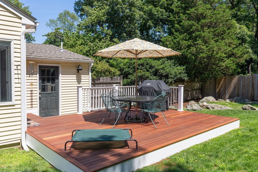 This light-filled ranch offers the comfort of single-level living with recent updates that make it easy to settle in and enjoy. With 2 bedrooms and 2 baths, great for first-time buyers, downsizers, or anyone looking for a manageable home in a great location. Recent improvements include the mahogany front porch and back deck (2025), new landscaping (2025), a new roof with solar-powered skylights (2024), a renovated primary bathroom (2024), refreshed kitchen countertops and sink (2024), and a fenced backyard (2022). Skylights brighten the family room and kitchen, giving the home a warm, open feel. Enjoy a generous backyard, central air conditioning, a single-car garage, and a clean, unfinished basement that adds flexibility for hobbies, a workspace, or extra storage needs. This prime location is 1/2 mile to downtown Hingham and Harbor, a 5 min drive to commuter rail and ferry, close proximity to top rated schools, and so much more. Enjoy all the south shore has to offer!