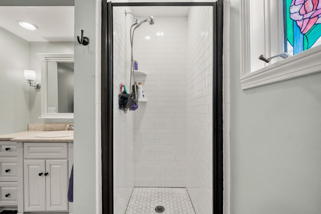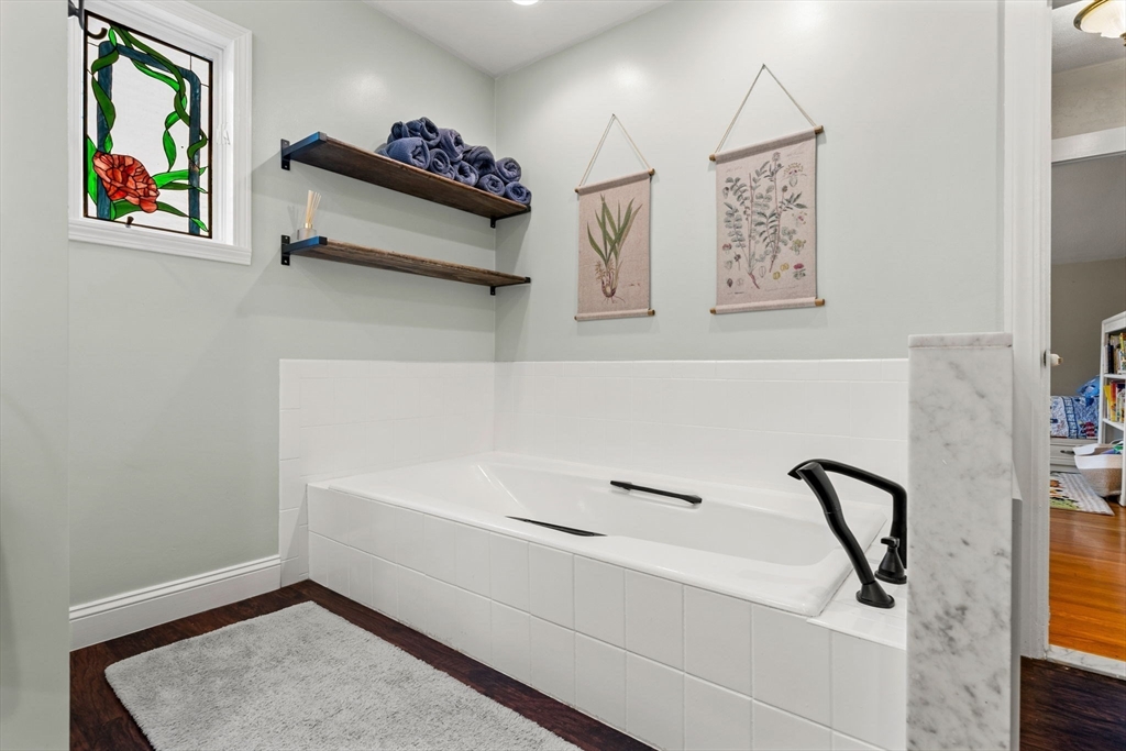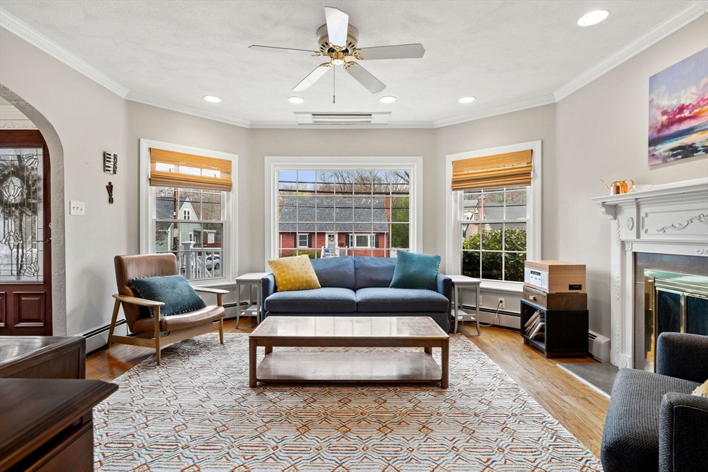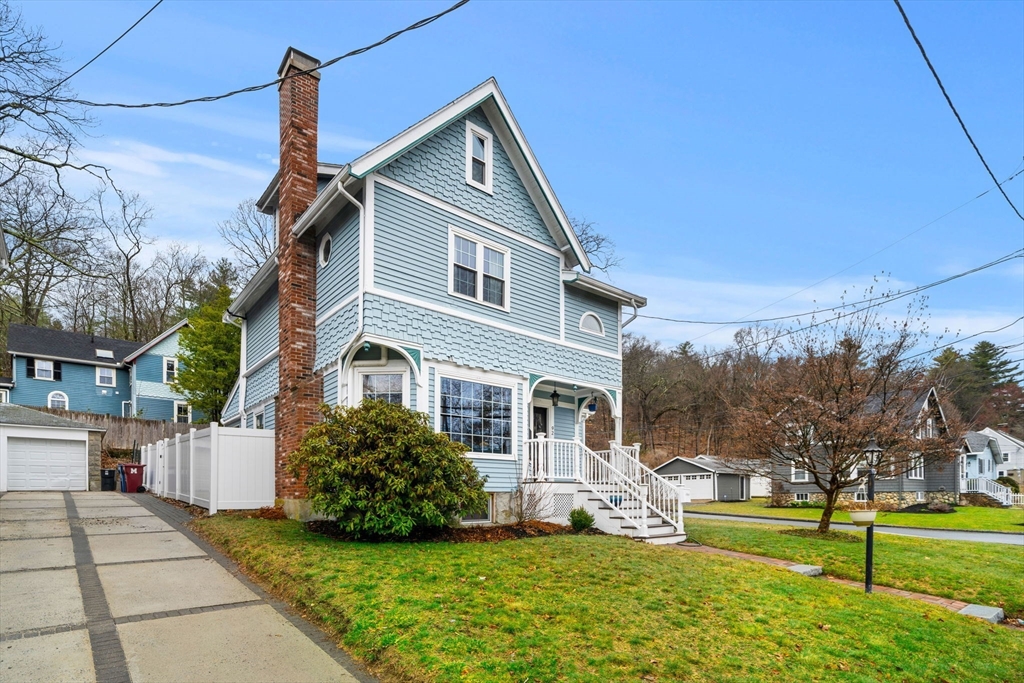 Timeless elegance meets modern comfort in this beautiful home, set in a top-rated school district, just minutes to the Melrose Highlands commuter rail, local restaurants & nearby playgrounds. Thoughtfully improved with new ductless heating & cooling, windows, waterproofed basement, dishwasher, hot water heater & upgraded insulation. Exterior enhancements include fenced yard, retaining wall, 8x10 shed, paver pathways with granite steps, raised garden beds & Trex front porch. Rich in character, features graceful archways, crown & carved woodwork, & period windows. A stately foyer opens to a living room with bay window, fireplace & detailed mantel, flowing into a formal dining room with medallion detail & French doors to a sunken vaulted family room. The vaulted kitchen is bright & inviting , ideal for everyday living & entertaining. Offers 5 bedrooms, office, updated bath & A 2006 addition adds exceptional comfort with mudroom and laundry, an upscale half bath & a charming porch