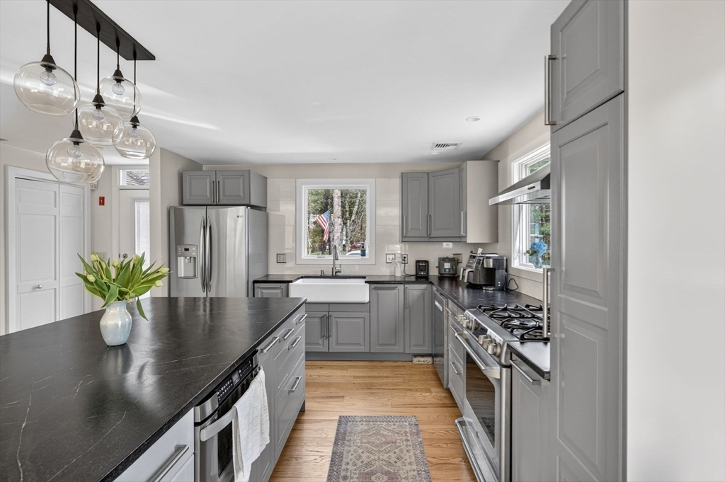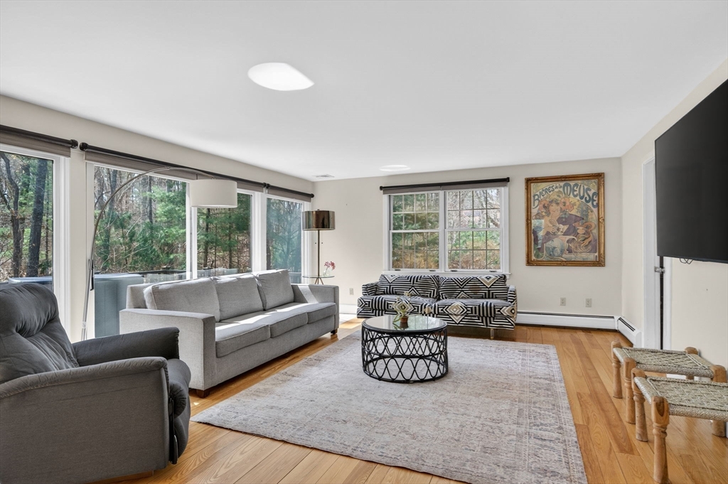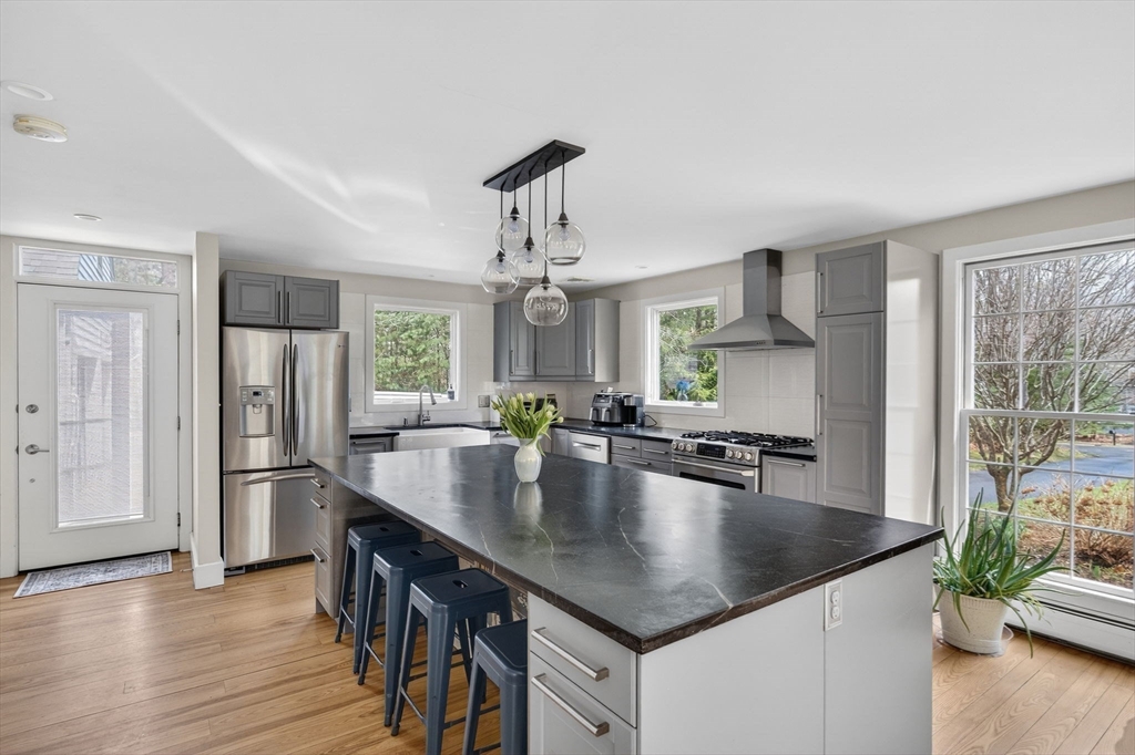 Located in one of South Dartmouth's most picturesque neighborhoods for its beautiful homes set on 1+ acre lots, this 3 bedroom, 3.5 bath home includes a newly constructed loft space with full bath above the attached garage (ideal for an office, bedroom, or in law), a nicely renovated open concept kitchen with an oversized island and custom cabinetry, living room with working fireplace, floor to ceiling windows, pellet stove, an additional first floor office space, first floor laundry, hardwood floors, full basement and an attached two car garage. Built in 1987, the home has been very well maintained overall and updated to include adding Central air. The home is set back nicely with the grounds made up of mature landscaping, natural tree lined boundaries and a large deck which provides a private and serene setting ideal for entertaining and outside activities. Brokers Open 4/10 from 10am-11 and an Open House on 4/11 from 11am-12:30.