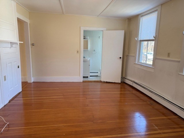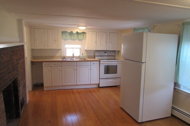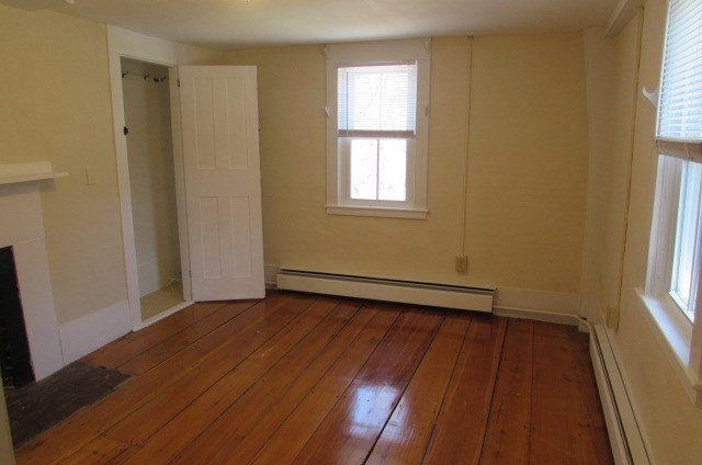 2+ bedroom unit where HEAT and HOT WATER INCLUDED! Off street parking for two cars. New windows, beautiful hardwood flooring throughout, eat in kitchen in a smaller (3 unit) historic building. Snow removal and lawn maintenance included. Washer and dryer dedicated to this unit on first floor. One bedroom on first floor and two additional rooms upstairs (one as a bedroom, one used as a large closet or possibly a small office). First months rent and security deposit required. Prosective tenants will pay for criminal & credit background check as well as eviction history ($49). No smokers and a good credit score a must.