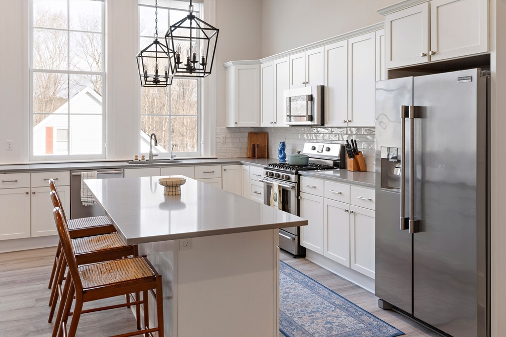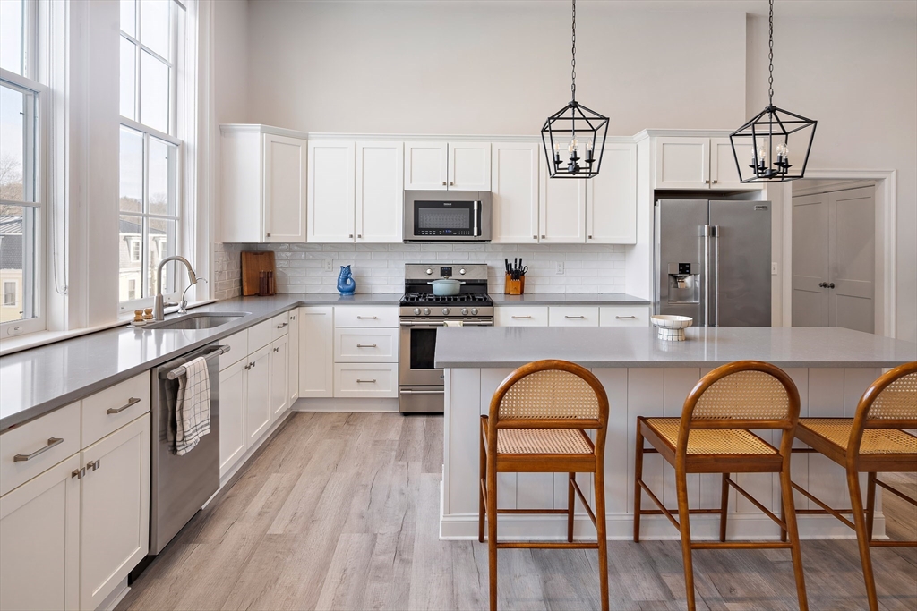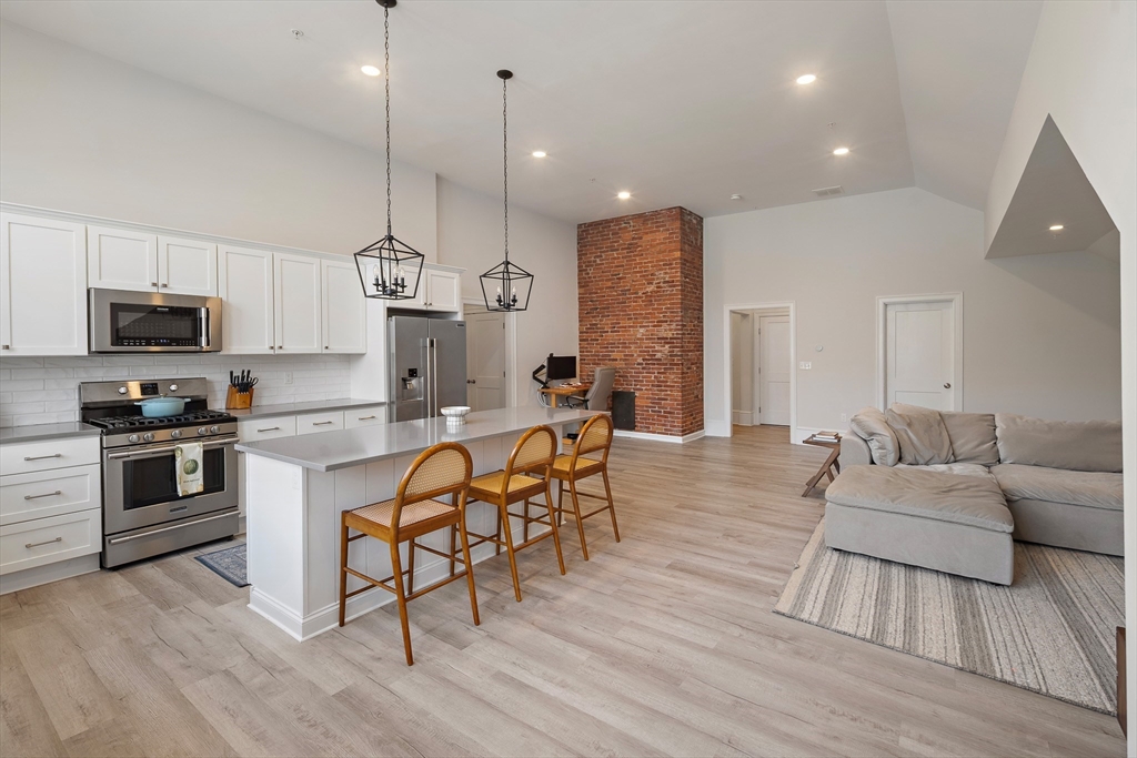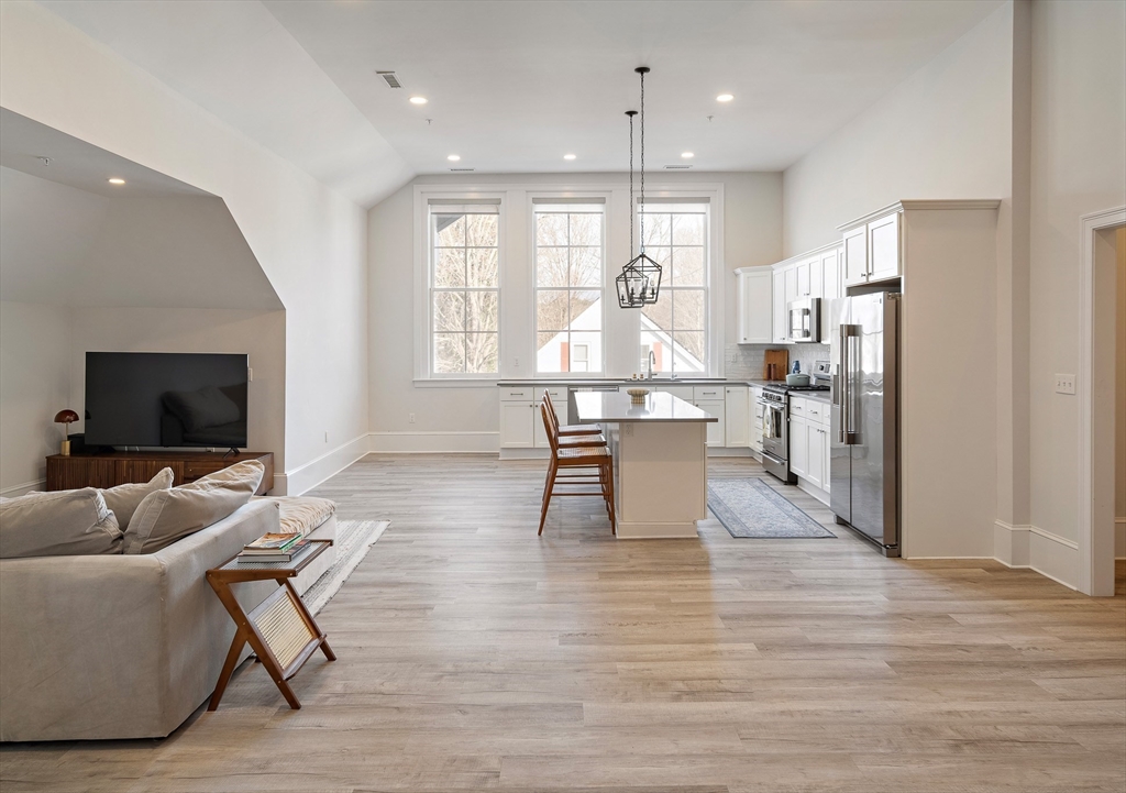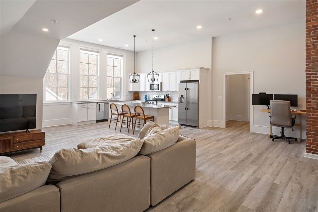 Step inside unit 301- this 2 bedroom 2 bathroom condo is flooded with natural light, oversized windows, and soaring ceilings. The Kitchen has stainless steel appliances and quartzite counters. The open concept living room is perfect for entertaining with not one but two spaces for dinning or a flexible work from home nook! The primary suite is not to be missed with an oversized walk in closet, double vanity sinks, and a marble shower. To round out this offering you have a generous sized second bedroom and two parking spaces.