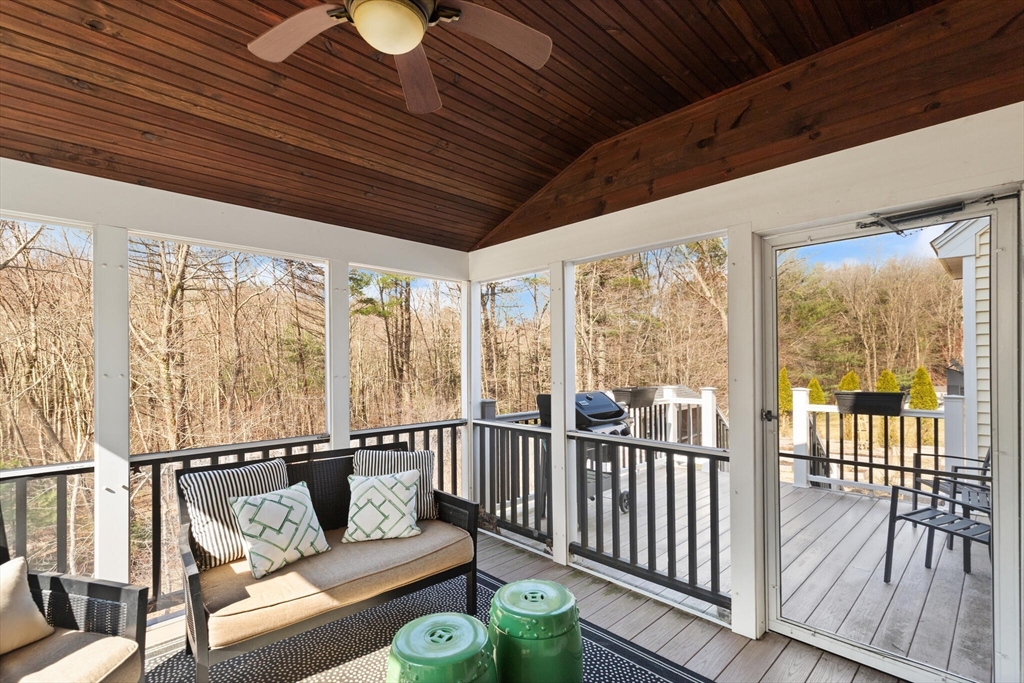 Privacy, nature, and beauty abound in this expansive 4 bedroom custom Colonial built in 2010. With over 3,100 sqft plus a finished walk-out basement, this charming home has the size and flexibility to accommodate any modern living arrangement. The updated kitchen, with all new appliances, is the centerpiece of the home and flows seamlessly to the large, sun-filled family room with cathedral ceilings and a gas fireplace. Take in the peaceful sounds of nature and observe wildlife from the screened-in porch or open deck off the kitchen. A dedicated home office rounds out the 1st floor. Upstairs, a stunning primary suite features a bright, tiled bathroom with a luxurious soaking tub, his and hers vanities, and a dressing room/oversized walk-in closet. Three more bedrooms complete the 2nd floor, while a full length walk-up 3rd level presents a fantastic expansion opportunity. Set on a 2.4 acre cul-de-sac lot, with a perfect yard and garden area, 22 Dexter Drive can be your forever home.