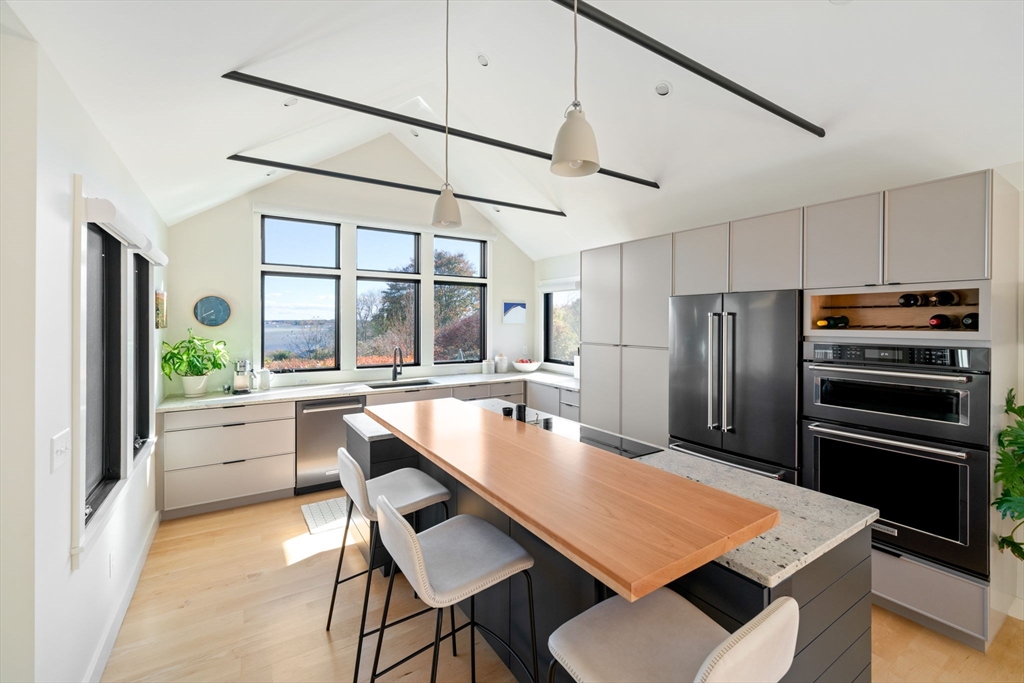 Sophisticated 3 bedroom, 2 bath residence in the heart of the coveted Acoaxet area, set high on nearly 1.5 acres with sweeping views over Westport Harbor and beyond. Built in 2021, this thoughtfully designed home offers waterside decks on both the main living level and the second-floor primary suite, creating seamless indoor-outdoor living. Hardwood radiant floors run throughout, enhancing the open-concept main level featuring a chef’s kitchen, two bedrooms, and a full bath. The second floor is dedicated to a private primary retreat, complete with a luxurious bath, walk-in closet. A partially finished lower level with water views provides flexible space for a family room, office, or gym. The expansive grounds offer potential for an accessory dwelling unit (ADU), adding versatility and future value. Ideally located just a short distance to the Acoaxet Club, Spindle Rock Yacht Club, and Elephant Rock Beach, this exceptional property captures the best of coastal Westport living.