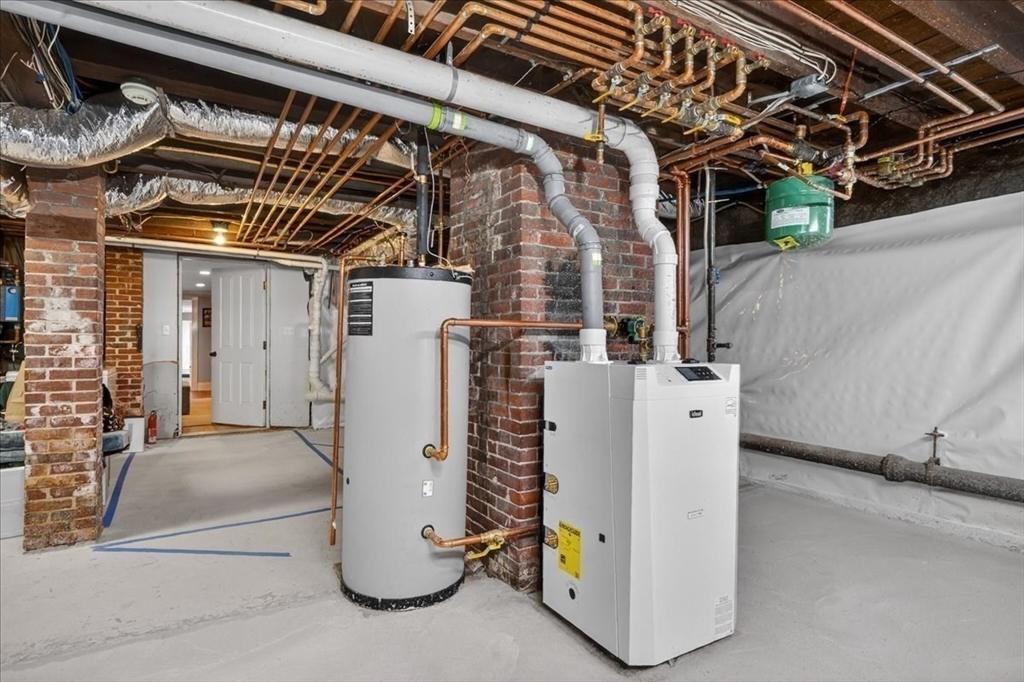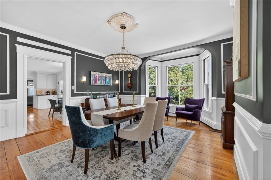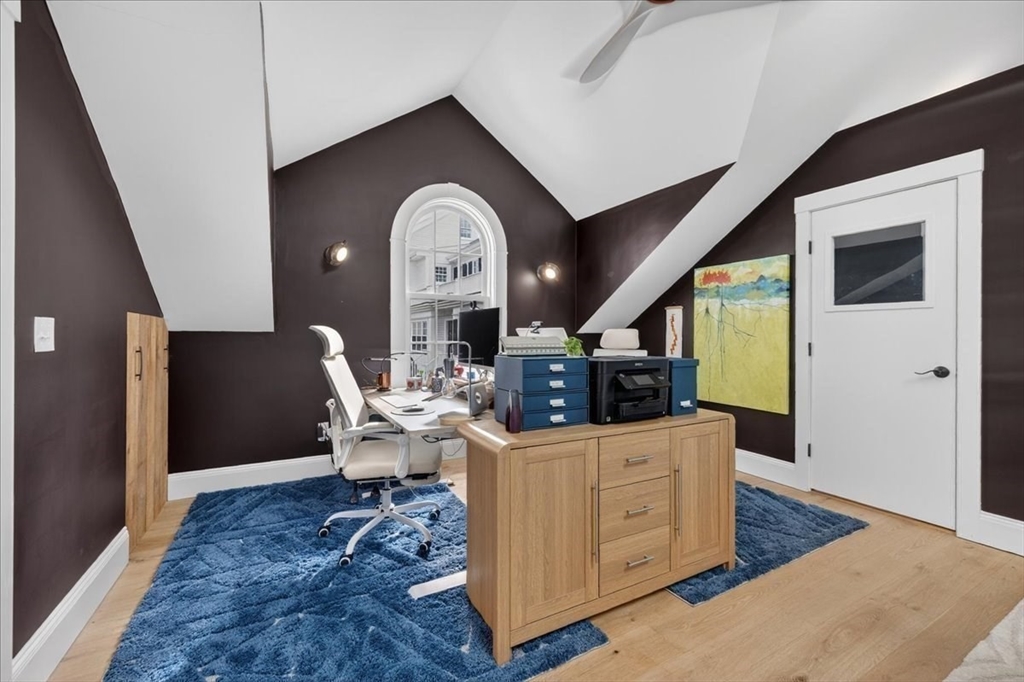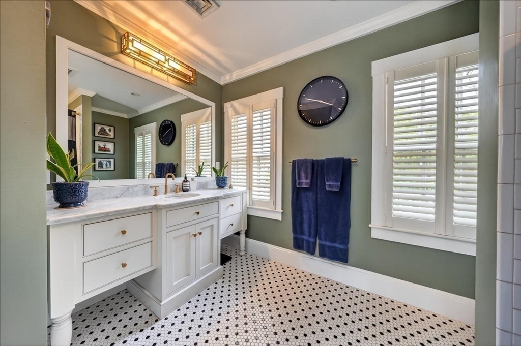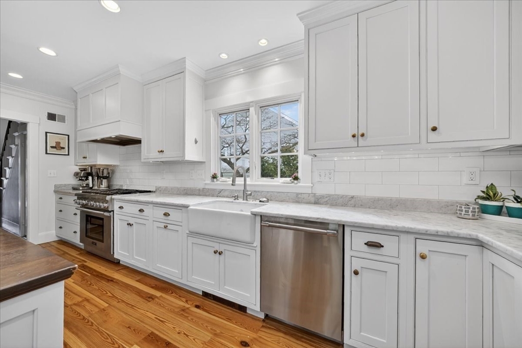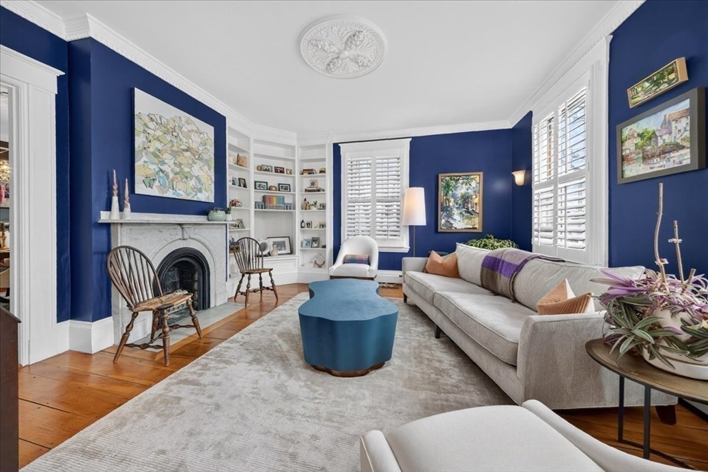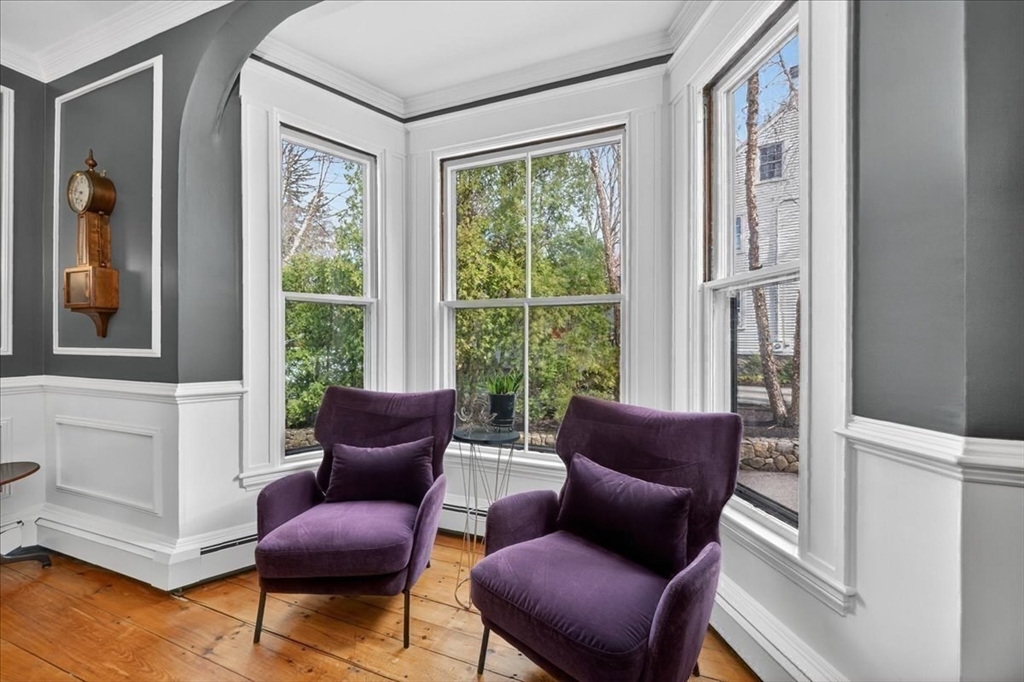 Stylish Colonial home with Carriage House, a stone’s throw from Hingham’s quaint downtown center! Main house boasts 4 bedrooms, 3.5 baths, office (or Guest Bed) & media room. Crown molding and hardwood floors throughout. An open plan chef’s kitchen comes with Thermador appliances- a six gas burner stove top, Sub-Zero fridge & custom cabinetry, leading to an expansive family room with gas fire. Formal dining room with bay window & elegant living room complete this floor. Access the Primary suite through a private hallway, with full bath, walk-in closet, laundry & custom cabinets. Two generous bedrooms and one smaller (or office) also on the 2nd floor. The spacious LL walk-out mud room and office have Buderus radiant heated floors, as do two full baths upstairs. Separate Carriage House includes a new full bath, kitchenette, cathedral ceiling with wooden beams & double garage. A private brick patio overlooks a charming backyard and lawn. Easy access to Boston via commuter ferry/train.