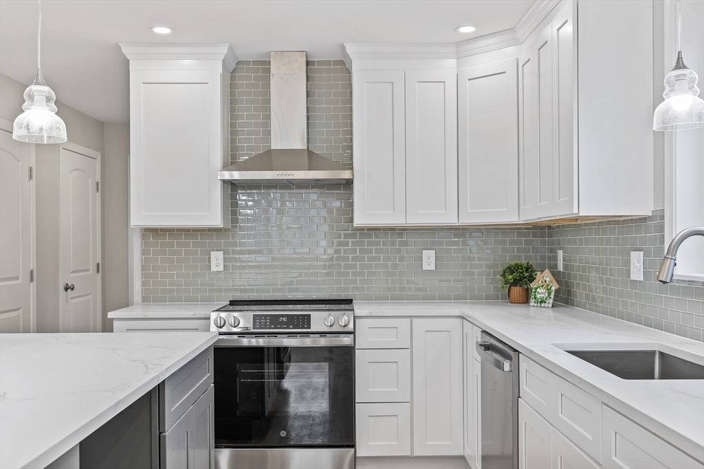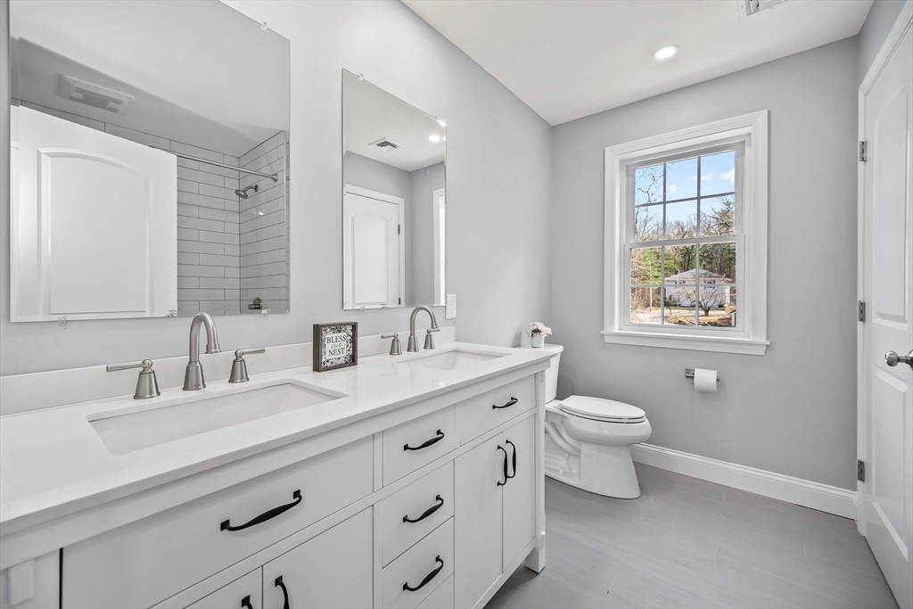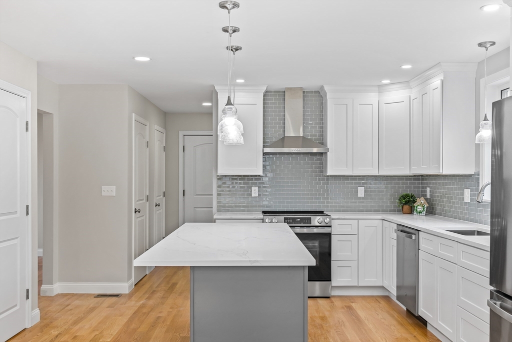 Move right into this delightful 4 bedroom, 3.5 bathroom home with a large two-car garage and fenced in yard in the Braintree Highlands. Walk-in and be stunned by the gorgeous hardwood floors throughout and natural light pouring through large windows. Beautiful white kitchen with quartz countertops and stainless steel appliances. The main floor has a living room, dining room, kitchen and a full bath. The second floor features a primary suite with two large closets with a private bath with large, tiled shower and a vanity with double sinks. There are three additional large bedrooms, a third bathroom with double sinks and laundry room. The basement features a large family room and another full bathroom and utility room.. Outside, there is a large paver patio and a level and spacious backyard that is fully fenced with a vinyl fence and is great for entertainment.