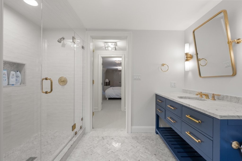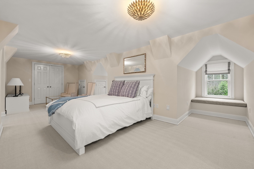 Surrounded by the beauty of Wellesley Farms, this exceptional home offers a rare blend of privacy, tranquility and stunning interior design. Bathed in natural light the front to back foyer welcomes you into this impressive home with high ceilings. Expansive windows frame views of the professionally landscaped grounds bringing the outdoors in & filling every corner with warmth & brightness. The beautifully appointed kitchen flows seamlessly into the inviting family room, offering an open & airy layout where comfort meets effortless style. The elegant living & dining rooms each include a fireplace, custom millwork, and mahogany-inlaid floors. Additional highlights include a gorgeous library with custom built-ins & French doors—perfect for working from home—and a stylish mudroom to keep belongings organized. Every detail of this home has been curated with superb craftsmanship. An idyllic retreat just moments from everything that makes Wellesley so desirable, with easy access into Boston.