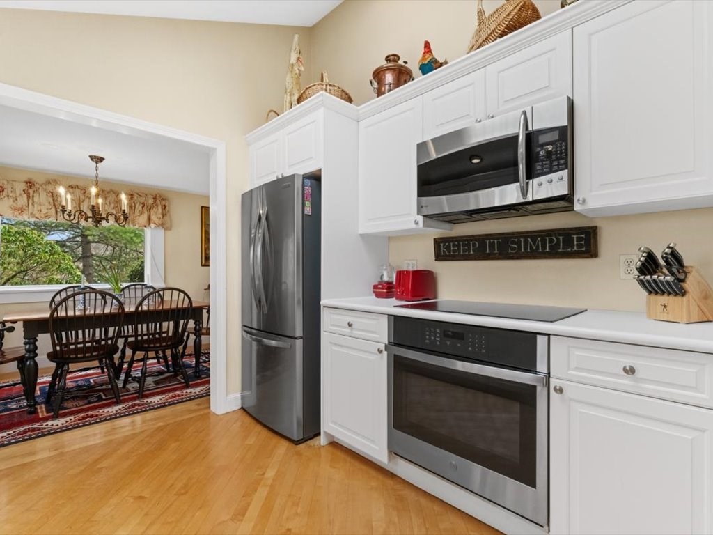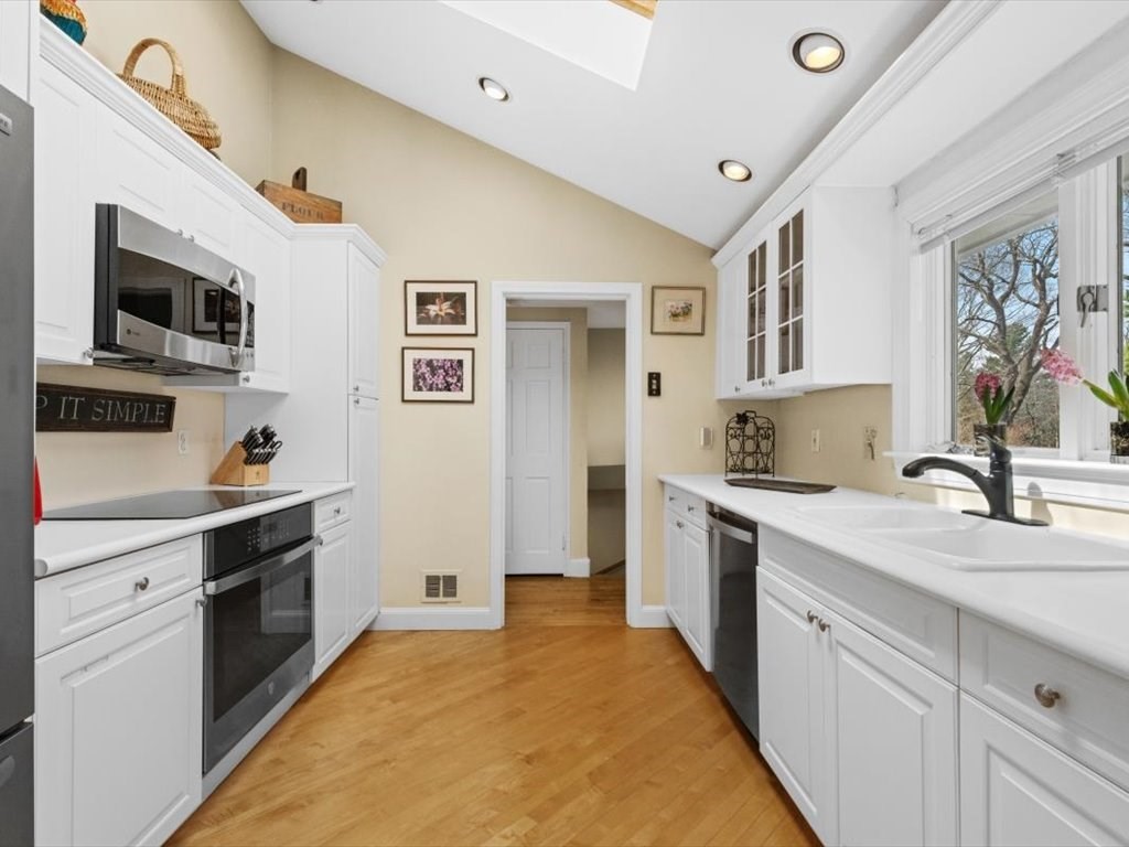 Sun-filled split-entry home offering a layout ideal for everyday living and entertaining. The bright main level features a spacious living room with wood-burning fireplace and a vaulted-ceiling kitchen that flows into a light-filled dining area. A short flight of stairs leads to three bedrooms and two full baths. Recent updates include refinished hardwood floors and a newer roof (2010). Additional highlights include central heat & AC, a 1-car garage, laundry room with glass doors, and plantation shutters. Tucked on a quiet, private road, enjoy outdoor living on the stone patio. Ideally located with easy access to the Wellesley Hills Train Station, shops, and more