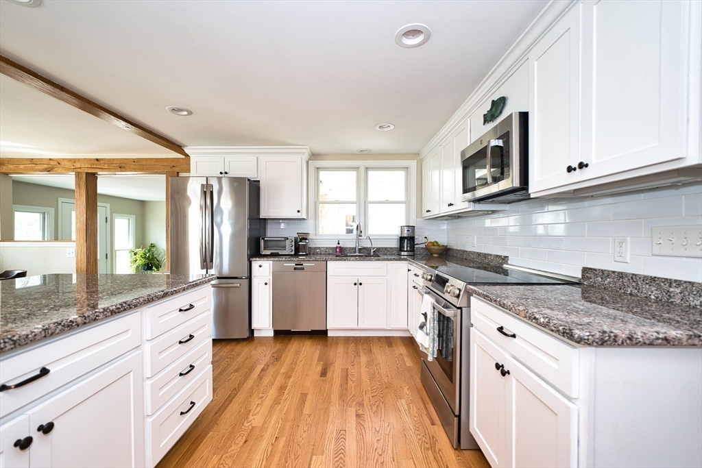 Welcome to the beautiful, private seaside community of Brandt Beach! This multi-level home was renovated in 2021 and features new hardwood floors, updated windows, and a new slider that opens to a deck. The expansive kitchen has also been updated with custom wood cabinetry, granite counters, and a white tile backsplash. The living room is anchored by a new wood stove insert fireplace. A distinctive beamed ceiling adds character and a sense of architectural interest to this relaxing space. Upstairs you will find two spacious bedrooms and a full bath, and the lower level offers an additional bedroom, full bath, and laundry. The home also is equipped with a whole house generator. Enjoy coastal casual living just in time for the summer and so close to the association beach!