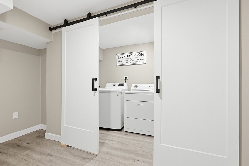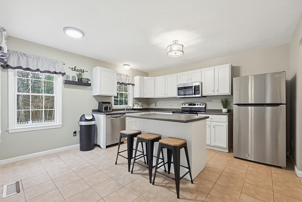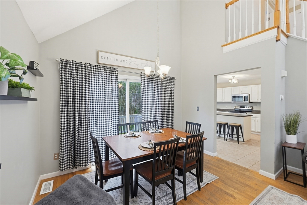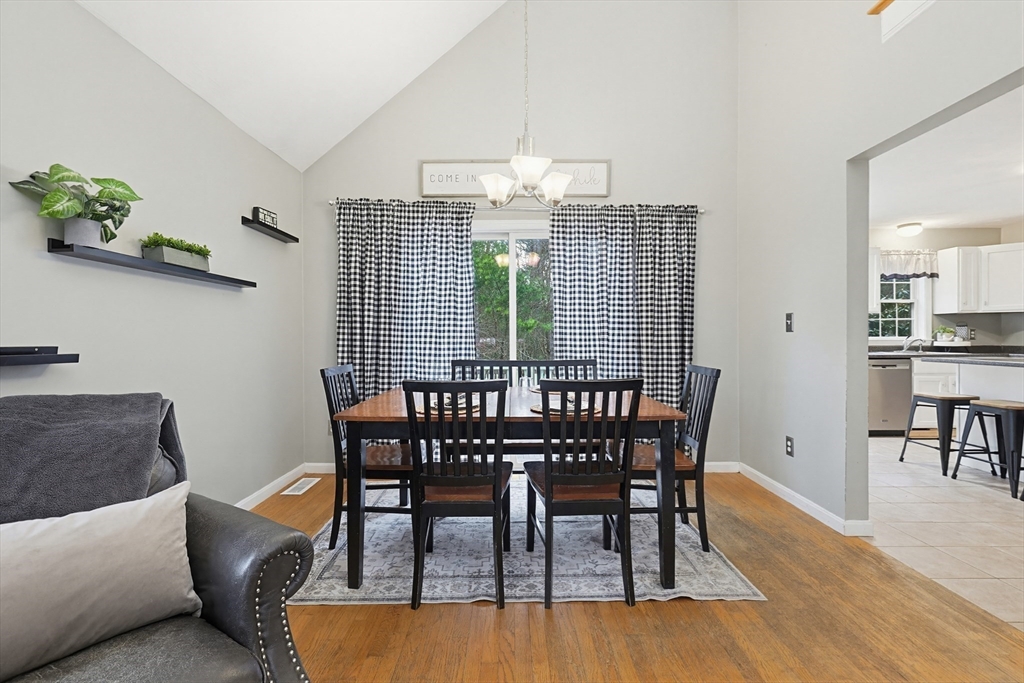Welcome to this beautiful 3-bedroom, 1.5-bath home in the highly sought-after Woodland Green community in Norton. This inviting property features an open floor plan with soaring cathedral ceilings, creating a bright and spacious feel perfect for everyday living and entertaining. The dining area flows into the main living area, while the finished basement offers additional flexible space for a family room, home office, or gym. Enjoy outdoor living in the fully fenced backyard. The complex includes a charming gazebo, play area, and tranquil fountain, tucked away yet in a convenient in-town location. Additional highlights include a one-car garage and a welcoming front porch. Conveniently located near local amenities, shopping, and major routes, this home offers comfort, style, and convenience in a desirable neighborhood setting.