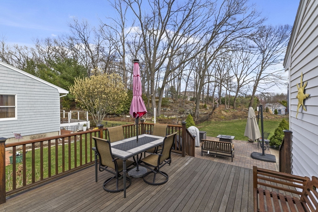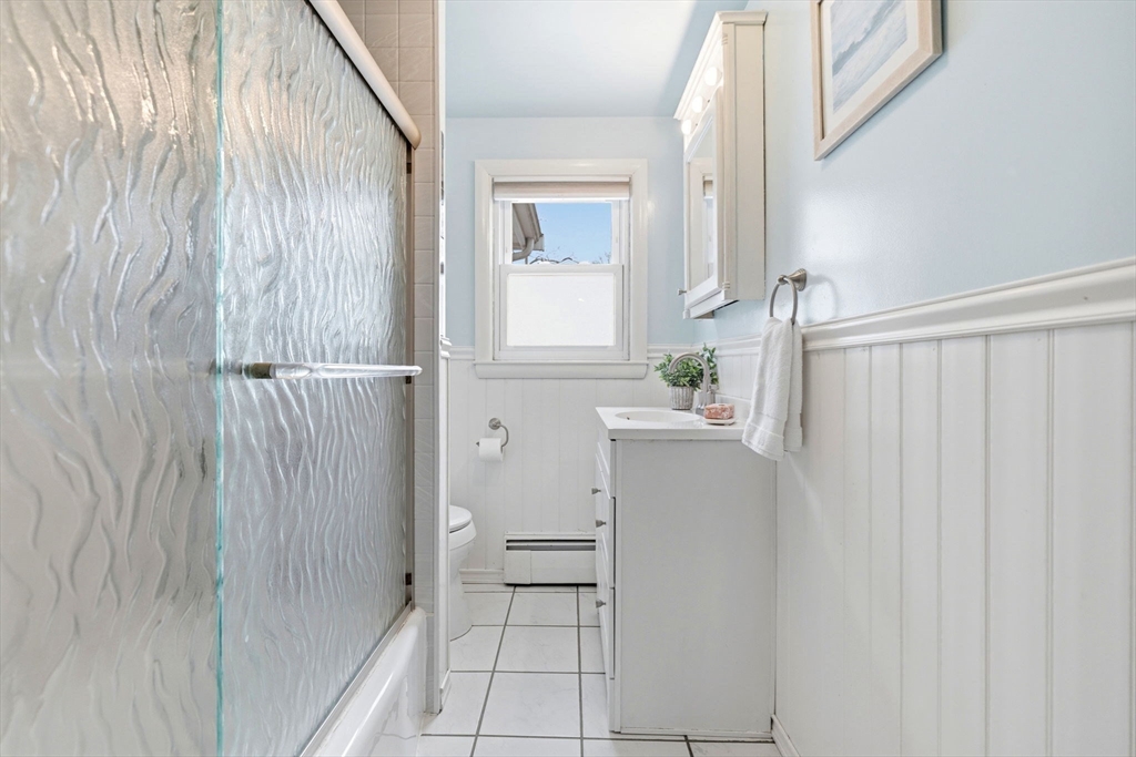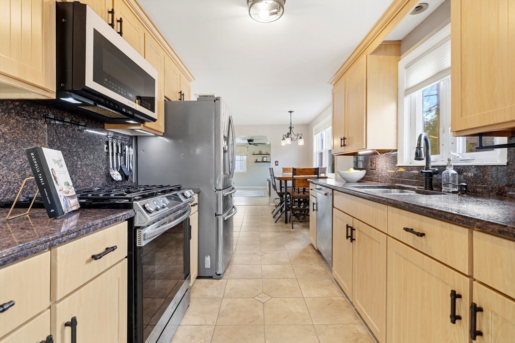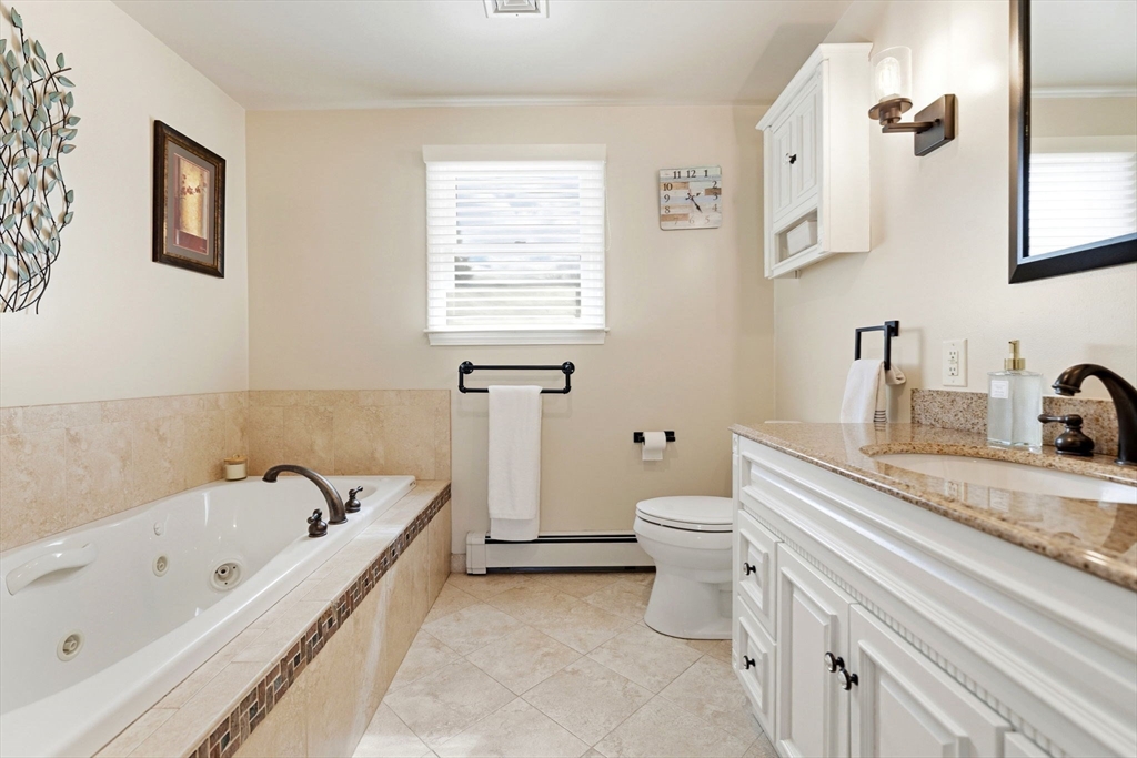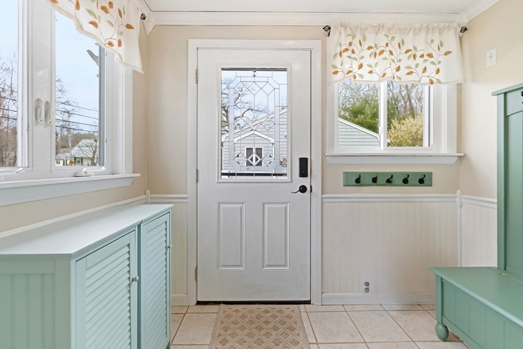 Do not let the exterior fool you, this home lives much larger than it looks. Start in the oversized mudroom, the perfect drop zone for shoes, coats, and bags. The inviting kitchen features wood cabinets, granite counters, and gas cooking, while the home also offers newer A/C and beautifully refinished hardwood floors that shine. The primary suite, added by the current owners, is a true retreat with a vaulted ceiling, custom walk-in closet, and a spa-like bath featuring a Jacuzzi tub and glass door shower. Downstairs is the real bonus: a generously sized finished lower level with a 3/4 bath, ideal for guests, a home office, media room, or in-law setup, plus unfinished space with laundry, and great storage. Outside, a spacious mahogany deck, expansive patio, and lovely yard plus a powered shed invite you to relax and entertain. Conveniently located just minutes from I-95 and I-93 in a quiet desirable neighborhood. The current owners have truly loved living here, and it shows!