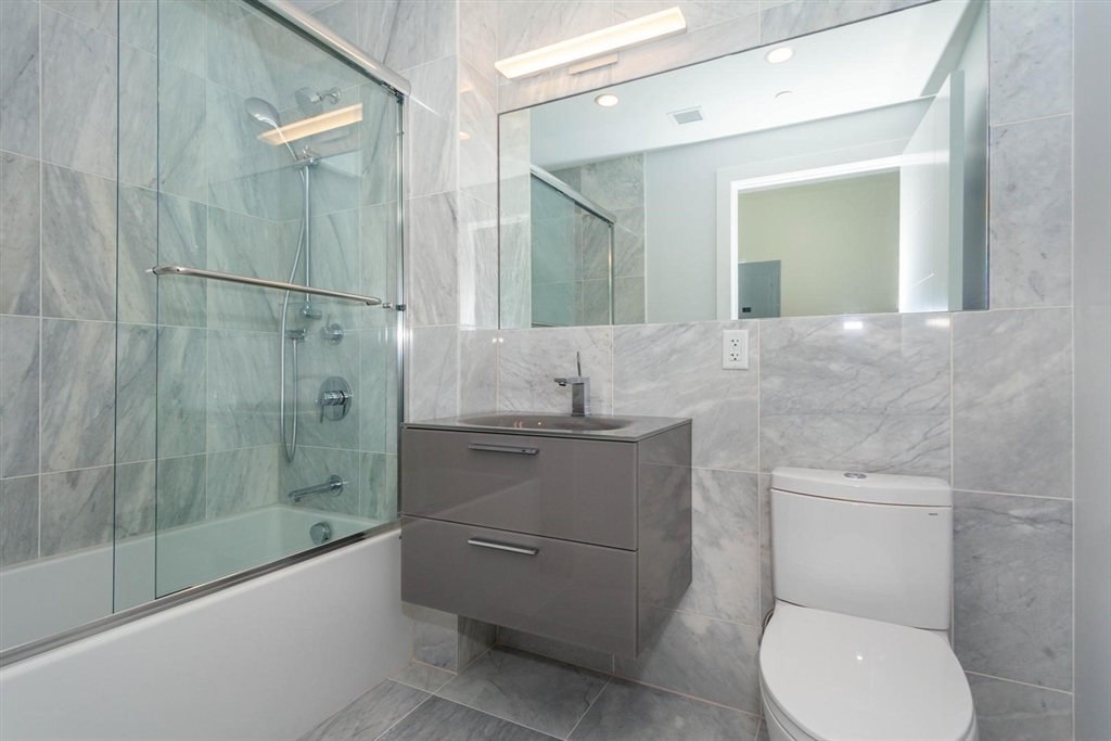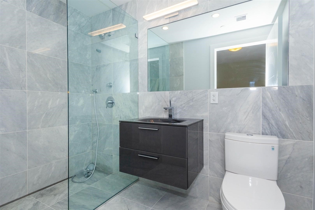 906 East 2nd, condo quality apartment building next to Pleasure Bay Beach. This newer construction has all the top of the line finishes like Bosch appliances, Grohe faucets, quartz counter tops with waterfall ends, built in refrigerator/freezers, and Italian cabinets creating a sleek modern look. Real oak floors go throughout the unit, LED lighting, in-unit laundry, 9ft ceilings, and central air/heat. Tankless water heaters ensure you'll never run out of hot water using your seamless shower with linear trench drains, Carerra marble, and Italian vanity. This unit also has it's own private outdoor deck and is on the top floor of the building. Steps away from the beach, jogging/bike paths, a new dog park, playgrounds, basketball/baseball fields, Castle Island, etc. Bus stops right on the corner. Garage parking is $250. Available July 1. Photos depict similar unit.