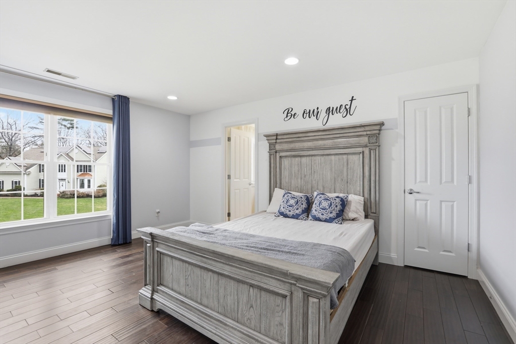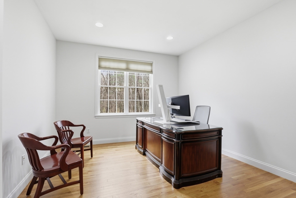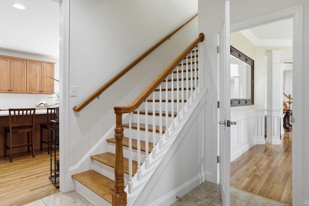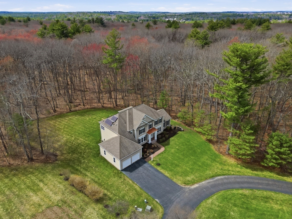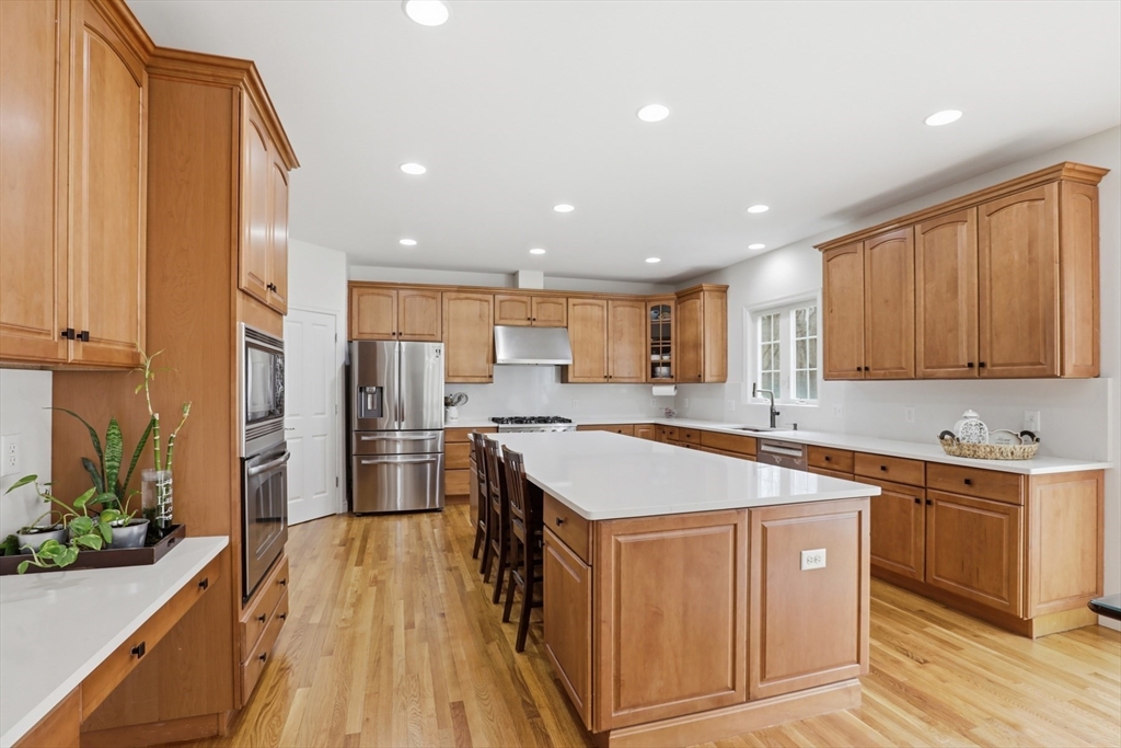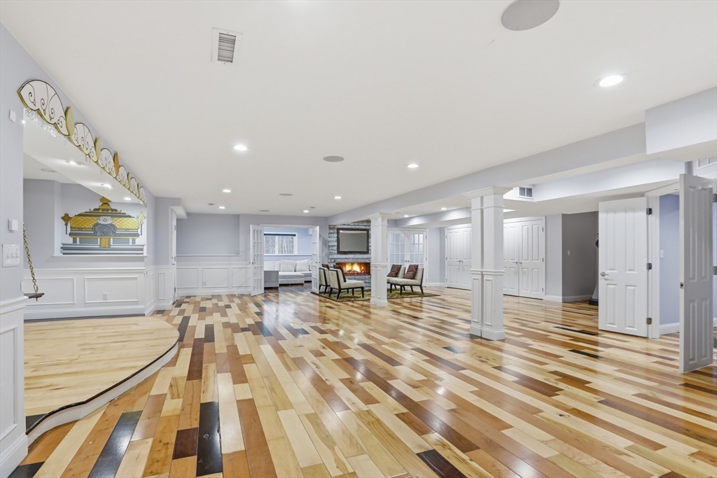 Set back from the main road, this stately Robbins Mill Colonial stands proud on one of the best lots in the neighborhood abutting conservation land and with lawn enough for field sports plus a future pool. A dramatic two-story foyer with an elegant crystal chandelier welcomes you to this open floor plan with flexible spaces. The gourmet kitchen impresses with a large island, quartz countertops and backsplash, and an easy flow into back yard or the family room with its stone fireplace and coffered ceiling. Dedicated entertaining and office space, plus a 1st floor bonus room for work, play or hobbies complete the 1st floor. Upstairs, the primary suite offers generous closet space, a spa-like bath, and sitting area or extra office, plus there are 3 additional bedrooms with ensuite or shared bath. The lower level adds 2,500+ SF including a theater room, Bose sound, ¾ bath, and potential for a home gym or in-law suite. Fresh paint, updated counters & faucets, plus owned solar panels.