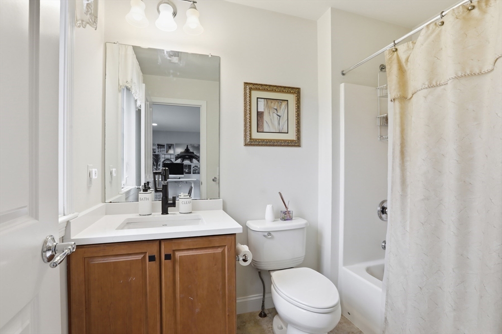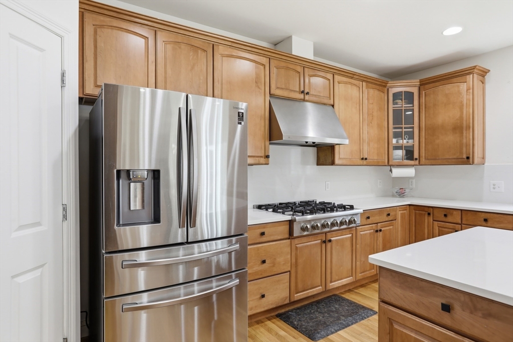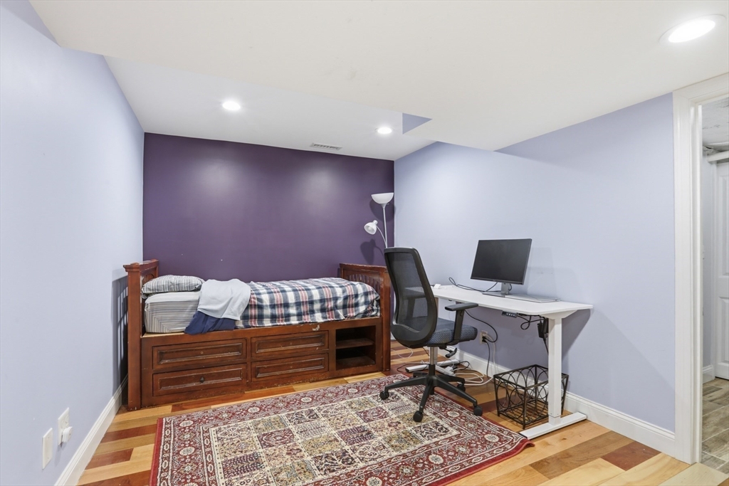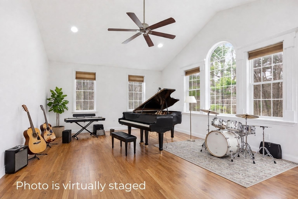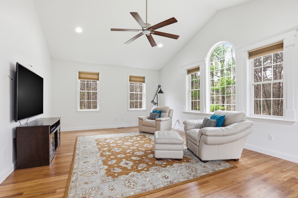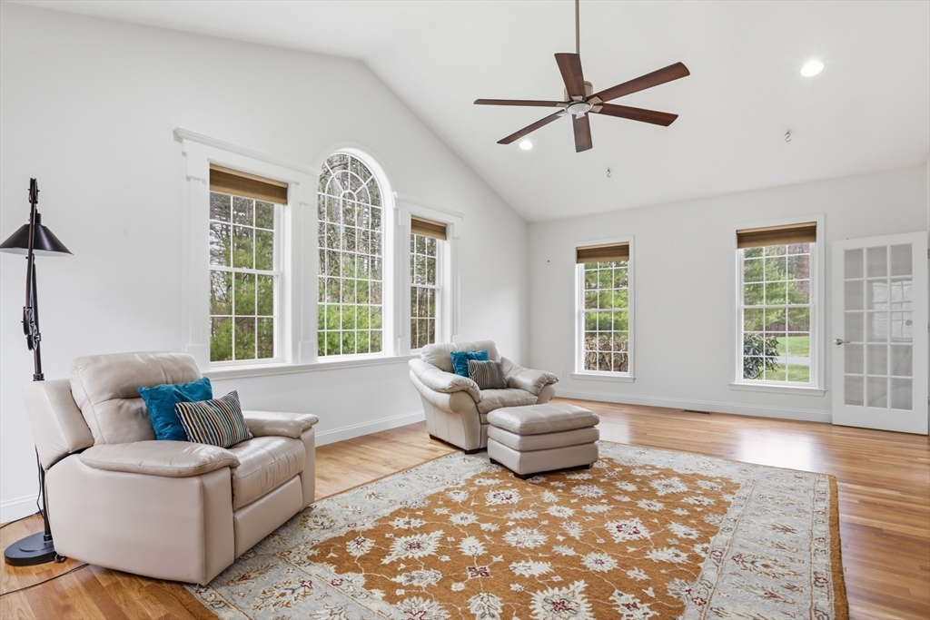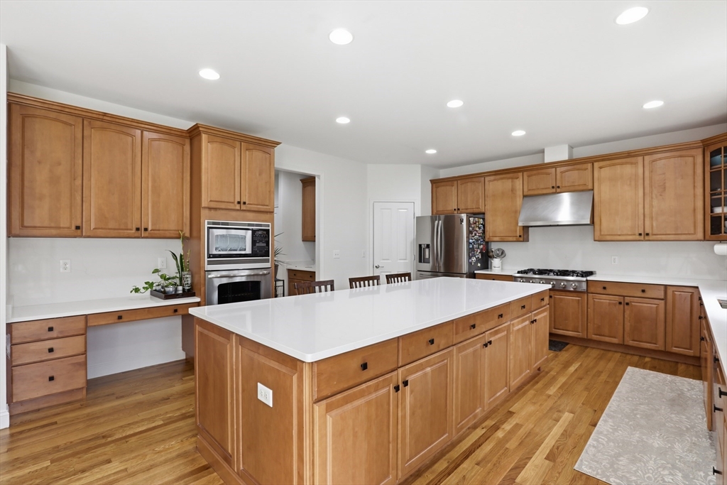 Set back from the main road, this stately Robbins Mill Colonial stands proud on one of the best lots in the neighborhood abutting conservation land and with lawn enough for field sports plus a future pool. A dramatic two-story foyer with an elegant crystal chandelier welcomes you to this open floor plan with flexible spaces. The gourmet kitchen impresses with a large island, quartz countertops and backsplash, and an easy flow into back yard or the family room with its stone fireplace and coffered ceiling. Dedicated entertaining and office space, plus a 1st floor bonus room for work, play or hobbies complete the 1st floor. Upstairs, the primary suite offers generous closet space, a spa-like bath, and sitting area or extra office, plus there are 3 additional bedrooms with ensuite or shared bath. The lower level adds 2,500+ SF including a theater room, Bose sound, ¾ bath, and potential for a home gym or in-law suite. Fresh paint, updated counters & faucets, plus owned solar panels.