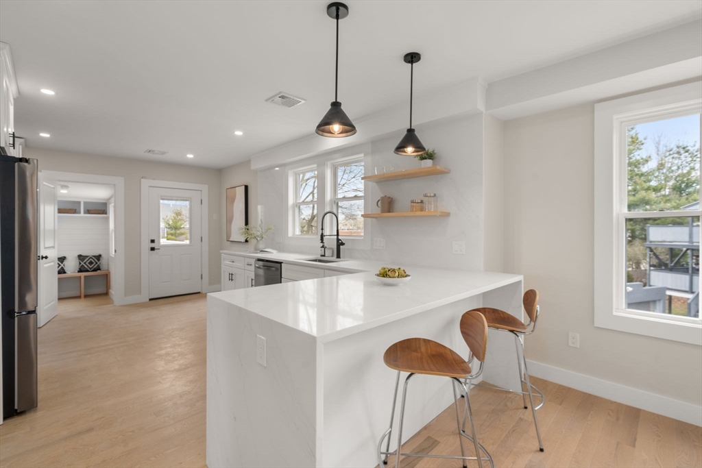 Completely & fully renovated 3-bedroom, 2-bath condo in excellent Belmont location! This thoughtfully redesigned home blends modern luxury w/ everyday functionality, offering an open & inviting layout ideal for both entertaining & comfortable living. Stunning kitchen equipped w/ custom cabinetry, quartz counters/backsplash & large peninsula w/ sleek waterfall offering elegant finishes. Primary suite features two spacious closets & beautifully tiled bath w/ double vanity. Convenient mudroom/laundry room & two additional generously sized bedrooms complete this level. Walk up attic offering ample storage space or future expansion potential. Bonus features include garage parking w/double wide driveway offering hassle free parking, along w/ your exclusive outdoor space w/ paver patio perfect for summer entertaining! Ideally located steps from PQ park, Cushing Square & commuter rail access in Waverley Square, this property offers the perfect blend of luxury, comfort & accessibility.
