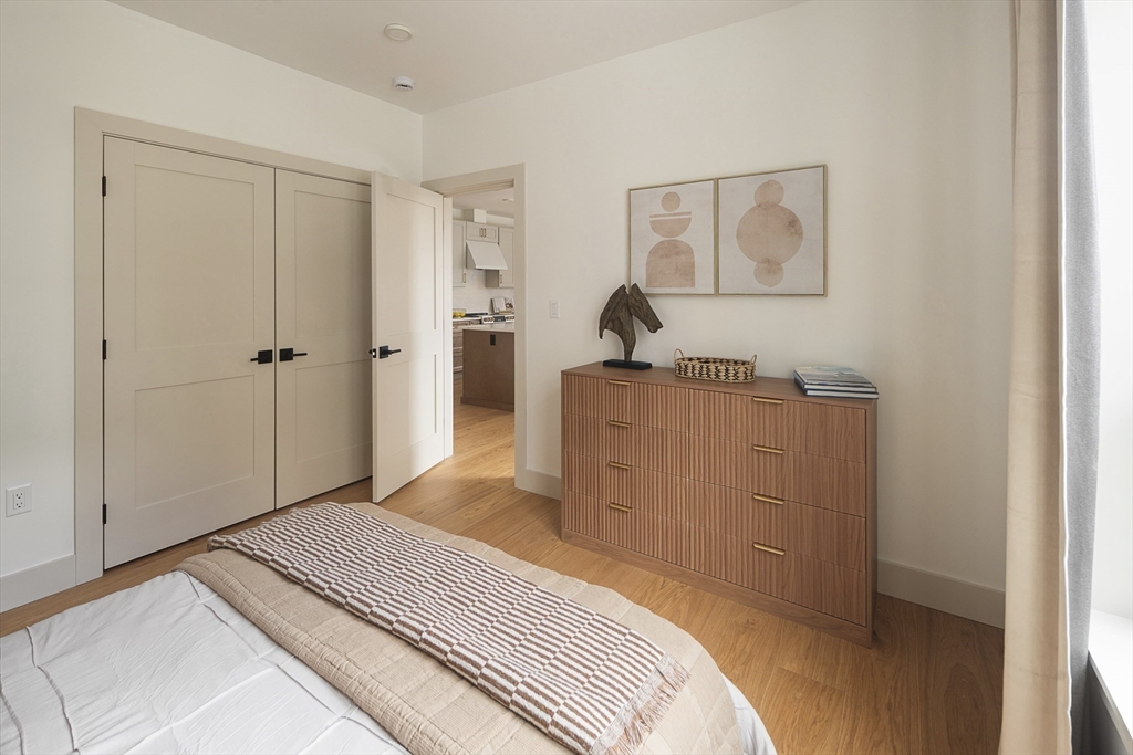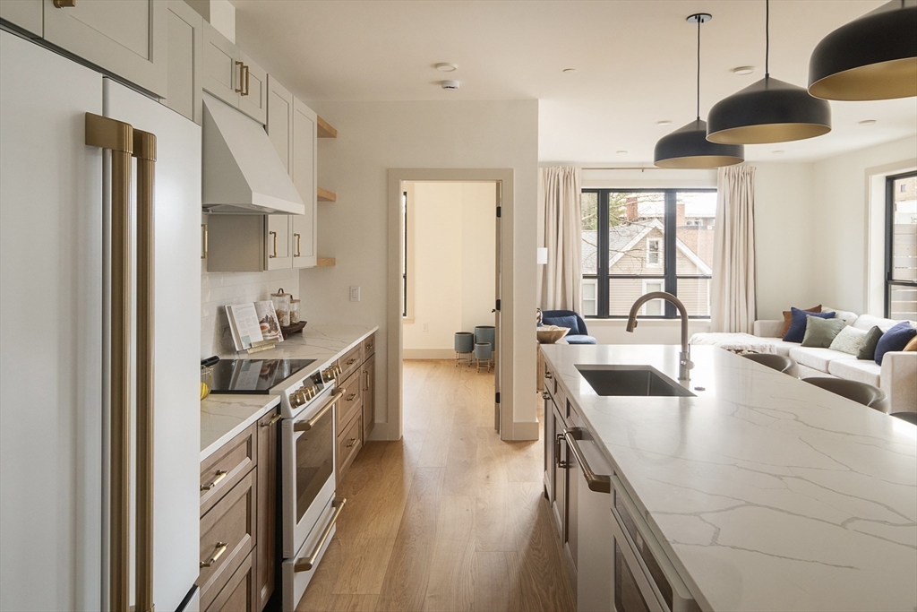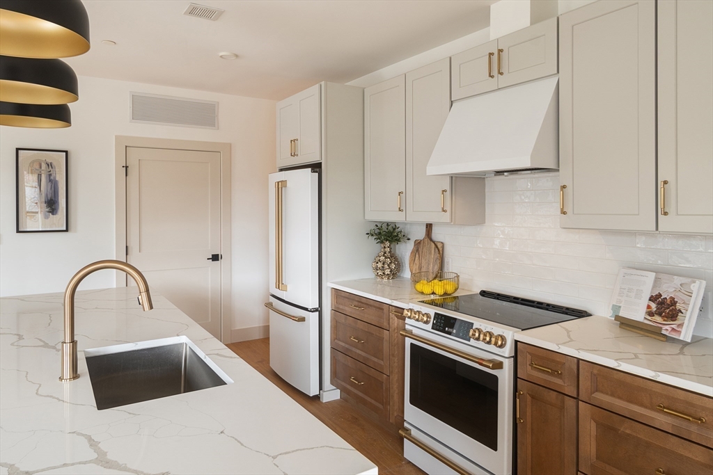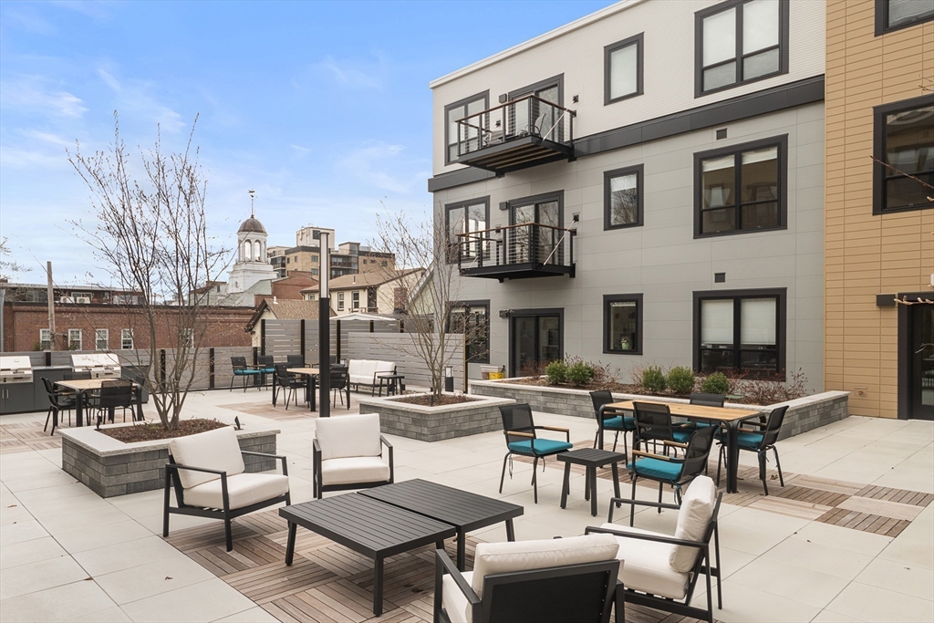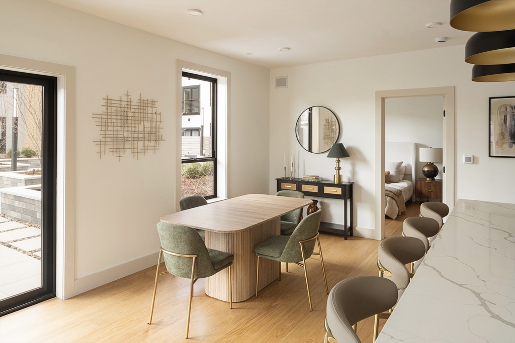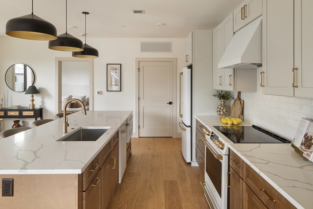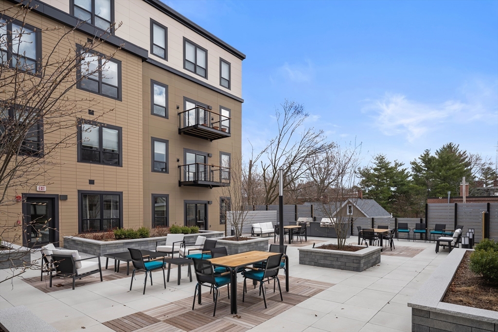 OPEN HOUSE Thurs, Fri and Sat 11-2pm. Welcome to Majestic Mill Brook, a luxury new construction condo complex built by The Maggiore Companies. Low-emissions development with high-quality finishes and contemporary flair. This stylish 2 bed, 2 bath split style residence offers open concept living room and dining area seamlessly connected to a modern kitchen, complete with electric range, exterior-vented exhaust hood and microwave drawer. Enjoy access to a private patio, leading to the community courtyard featuring grilling stations, comfortable seating and lush plantings. Additional community amenities include a 5th floor roof deck, ground level Urban Garden and community fitness center. Enjoy everything Arlington has to offer from the Minuteman Bikeway only 0.2 miles from Majestic, to endless dining, shopping and recreational activities. 1 deeded garage parking space with EV charger, bicycle storage and storage unit. Pet friendly community.