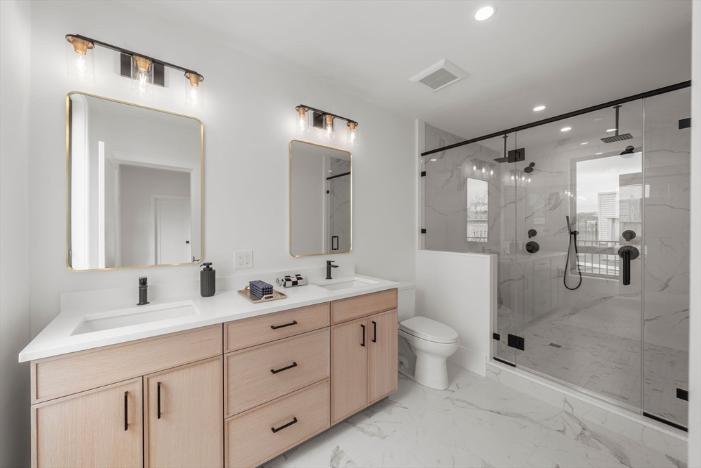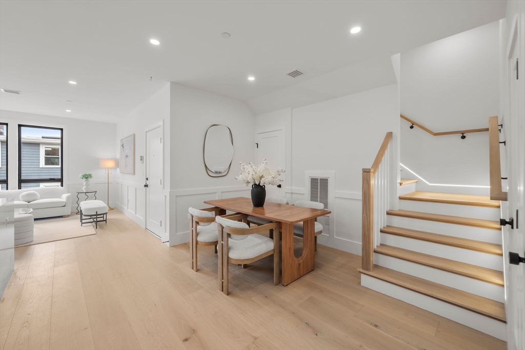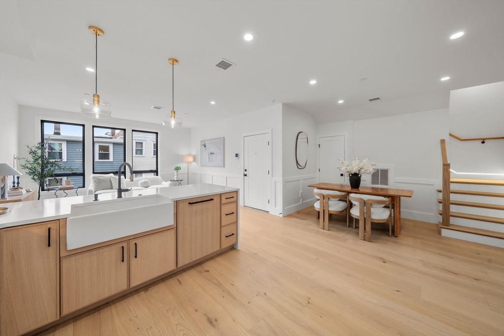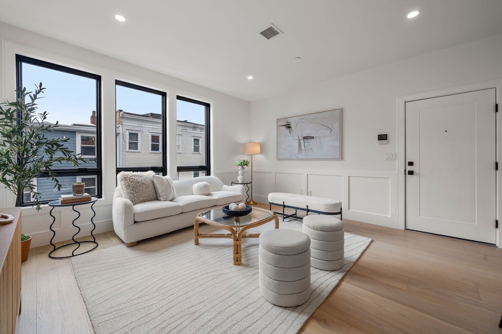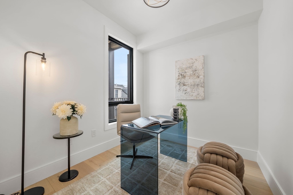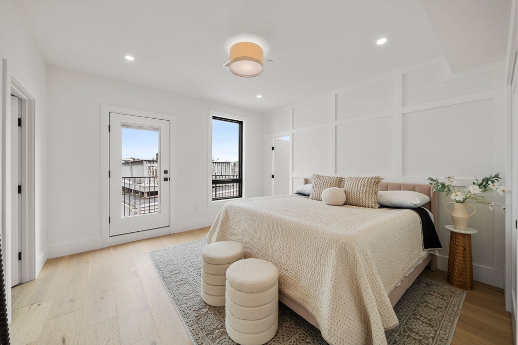The premier residence at 136 W 8th Street, this newly built penthouse duplex offers 4 bedrooms plus an office, 3 baths, nearly 2,000 sq ft, and two private balconies. Designed for modern living, it features soaring ceilings, wide-plank white oak floors, and oversized windows that fill the home with natural light. The chef’s kitchen includes quartz countertops, a large island, and custom cabinetry, flowing into spacious living and dining areas. The primary suite boasts a walk-in closet and spa-like bath, while additional bedrooms and a flexible office/den suit guests or work-from-home needs. With in-unit laundry hookups, central air, two garage parking spaces, and high-end finishes throughout, this home combines comfort and style. Located just blocks from Broadway, Seaport, and South Boston’s shops, dining, and beaches.