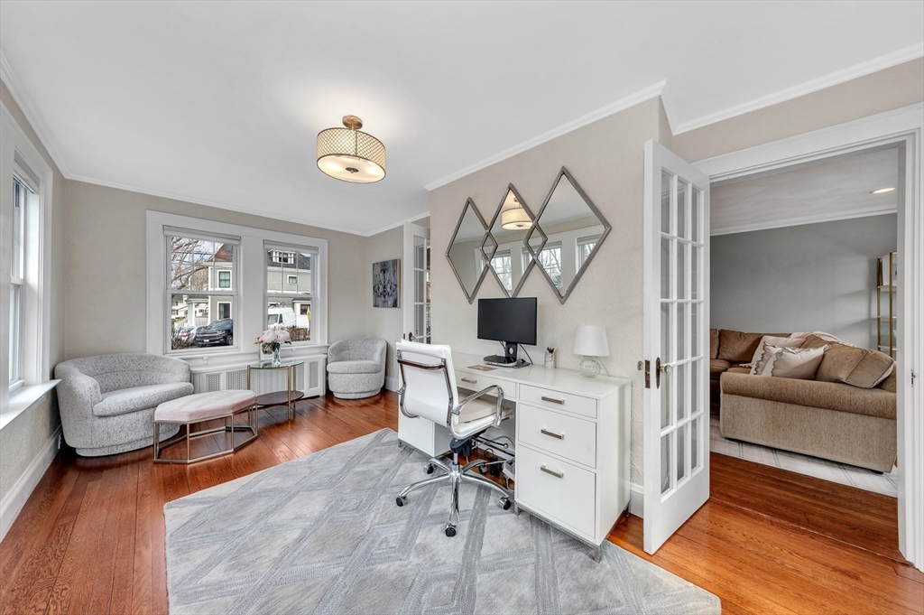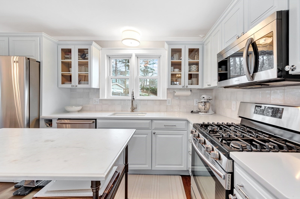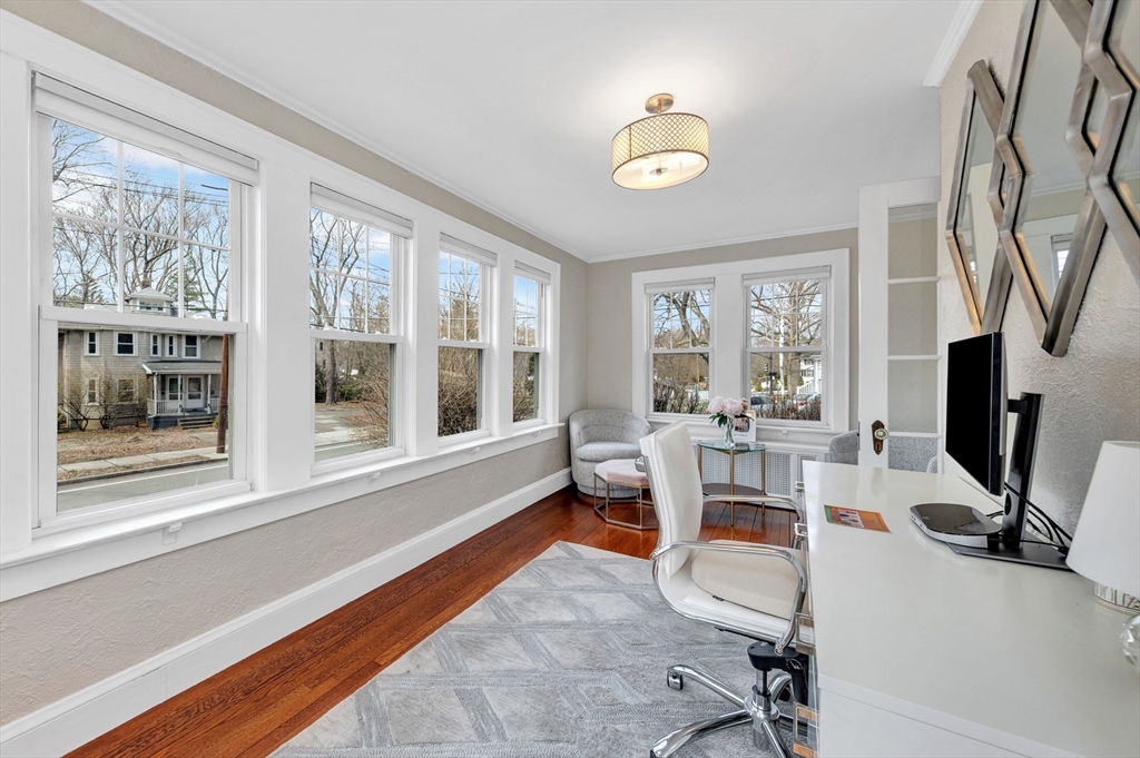 Oh, how beautiful life can be when lifestyle & location align! Imagine living just over a mile from the shops & restaurants in the Center, while also being able to stroll down the block to enjoy Leonard Field & the bike path? Stylish & chic, this quaint yet elevated gem was thoughtfully designed to preserve its original, nostalgic charm. Surprisingly spacious, the main level features a sunny front-to-back living room, dining room, & a truly beautiful sunroom/office. The updated kitchen w/marble island & built-in breakfast nook connects beautifully to the outdoor space including the bluestone patio & fenced yard. Upstairs, appealing angles & peaks frame a front-to-back primary w/customized closets & private deck, a fully tiled bath, + 2 additional bedrooms. Dreaming of more space? The finished lower level is perfect for occasional guests or playroom, + offers laundry & a pristine utility/mudroom! All in a neighborhood known for its friendly vibe, near the train, ask agent for updates!