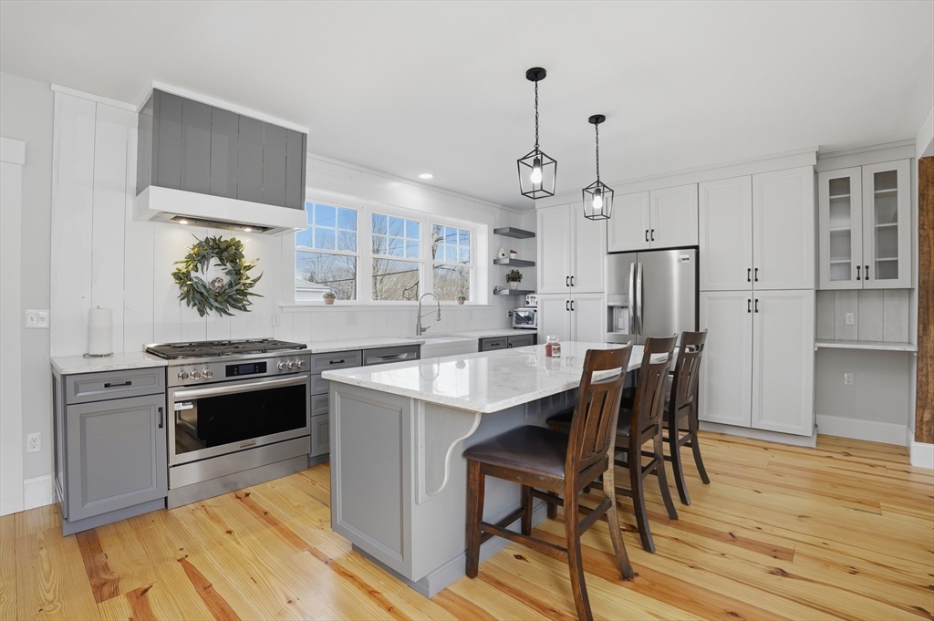Fully Renovated 5-Bedroom, 2.5-Bath Colonial with Added Square Footage and Modern Luxury. Step inside this stunning home featuring a first-floor master suite with walk-in closet, elegant clawfoot tub, stand-up shower, and refined tile finishes. Entertain in the chef’s kitchen with stainless steel appliances, granite countertops, hardwood floors, and exposed beams in the sun-filled living area. Four additional bedrooms share a full bath, with a dedicated second-floor laundry for convenience. Main floor includes mudroom and half bath. Energy-efficient mini-splits, new roof, windows, and updated electrical panel ensure comfort and peace of mind. Expansive backyard with 12×24 shed and space for a garage. Perfect blend of classic colonial charm and modern upgrades, minutes from shopping, dining, recreation, and Rte. 2. Turnkey, country living at its finest