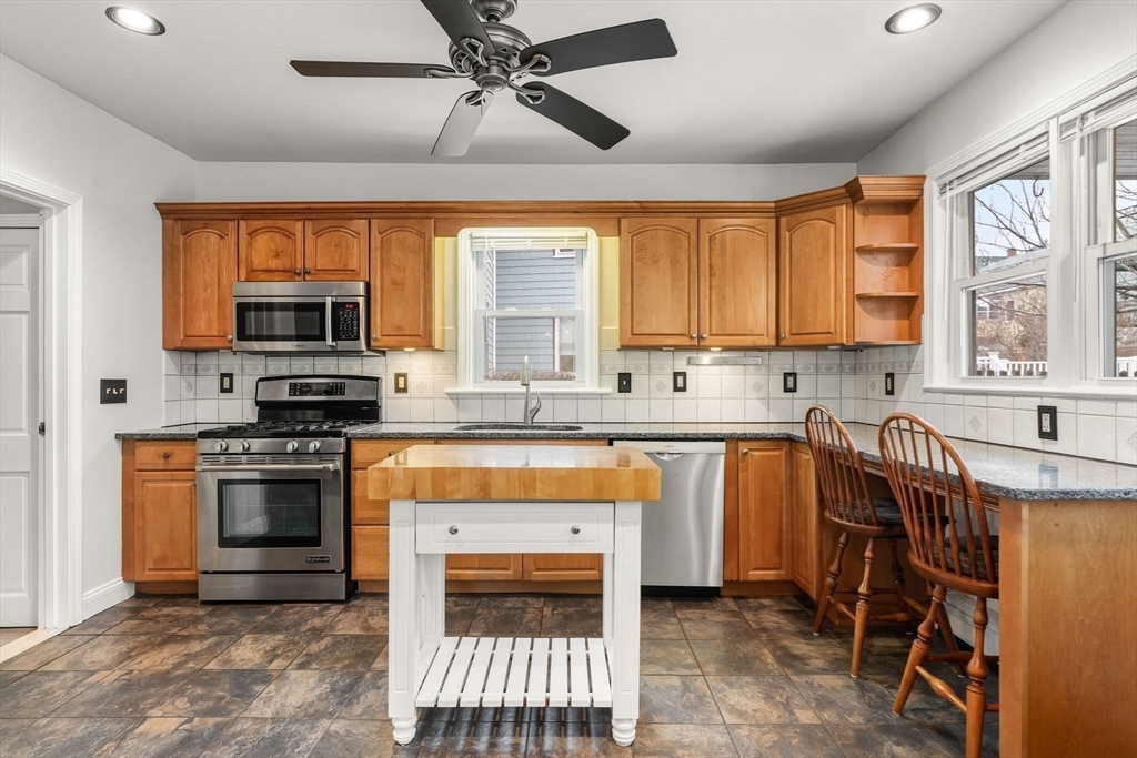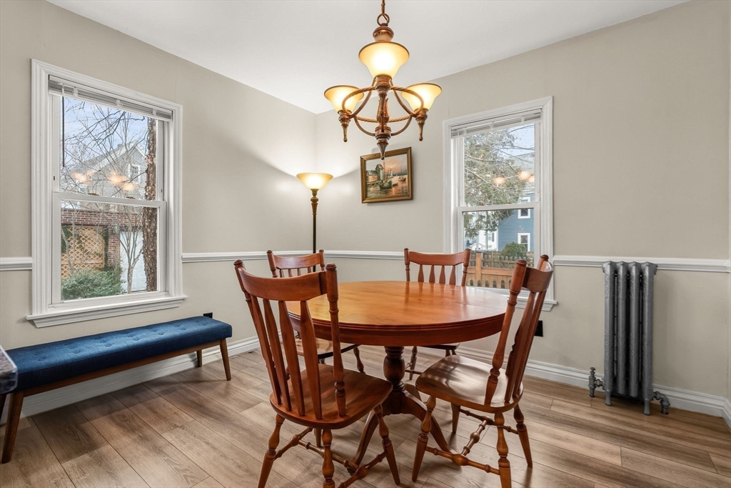 Tucked in the heart of Somerville, this one-of-a-kind property blends convenience, charm, & serenity. A colorful stained glass front door warmly welcomes you inside, setting the tone for the character found throughout. Ideally located just across from the MBTA Green Line, commuting is effortless. This lovingly maintained 3-bed, 1-bath home has been thoughtfully updated over the years, featuring rich Brazilian cherry wood floors in the living room, a cozy gas fireplace, & a well-appointed kitchen w/ stainless steel appliances. The bathroom offers an added touch of comfort w/ heated floors, while every detail throughout reflects pride of ownership & timeless character. A standout feature is the rare & abundant parking, complete w/ a 3-car garage and an additional 3 driveway spaces, an exceptional offering in this vibrant urban setting. Step outside to your own private oasis: a beautifully landscaped backyard filled w/ lush greenery & a tranquil koi pond, creating a retreat right at home.