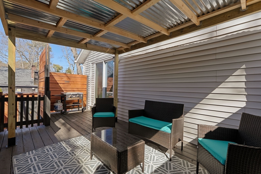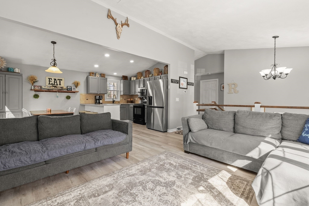 Welcome to easy coastal living in Hampden Meadows. Tucked away on a quiet dead-end street, this beautifully maintained split-level home blends comfort, space, and serenity—complete with scenic westerly water views on your drive in.The sun-filled upper level features vaulted ceilings, hardwood floors, and an open layout perfect for everyday living and entertaining. The dining area opens to a private deck, ideal for morning coffee or relaxing at sunset.Downstairs offers a private retreat with a spacious primary suite, additional living area, and home office. A walkout leads to a manicured backyard with a fire pit—perfect for gatherings or quiet evenings.With central air, a low-maintenance driveway, and a peaceful setting near top-rated schools, the East Bay Bike Path, and local amenities, this home offers the perfect coastal lifestyle.