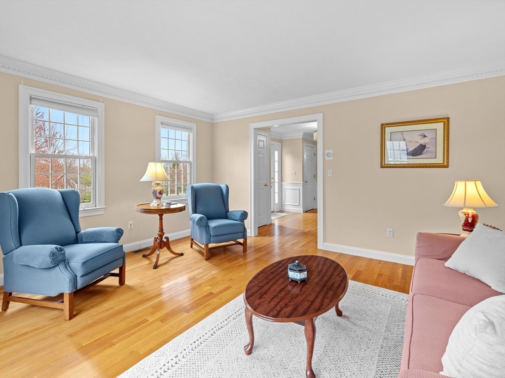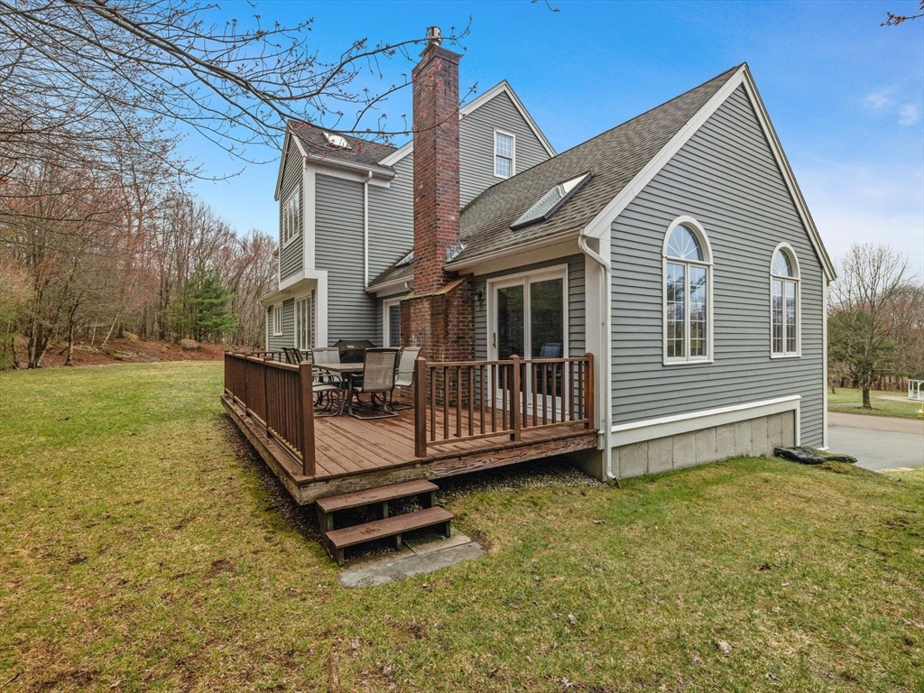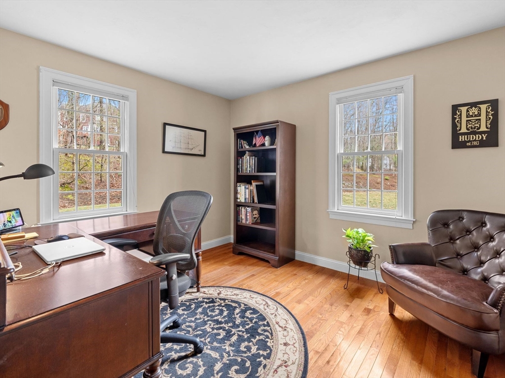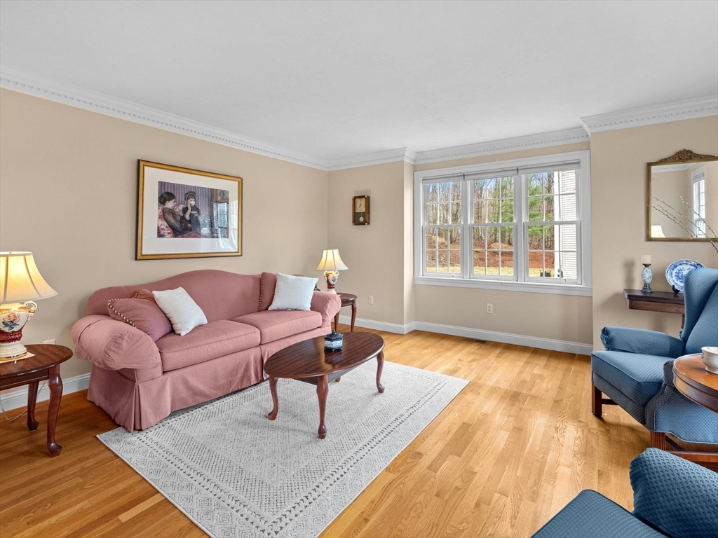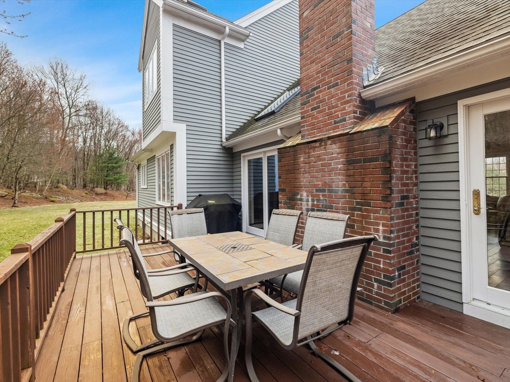 Welcome to the highly sought-after Uhlman Farms Birchwood Village neighborhood. Offered by its original owners, this lovely 4 bedroom colonial is located on a quiet cul-de-sac surrounded by conservation land featuring an open space with gazebo. Once inside, you will appreciate hardwood floors throughout most of the 1st floor and the generously sized kitchen with cherry cabinets and granite counters. It opens into a 24'x24' cathedral ceiling family room. Two atrium doors lead to a large private sundeck. The living room & formal dining room appointed with crown molding & wainscoting are welcoming spaces for dinner guests. A private home office and half bathroom with laundry complete the first floor. The second floor has 4 bedrooms and a hallway full bath with double vanities. The front-to-back primary suite has a large walk-in closet & an oversized full bathroom with whirlpool tub and fully-tiled shower stall. The property is furnished with natural gas heat, town sewer & water.