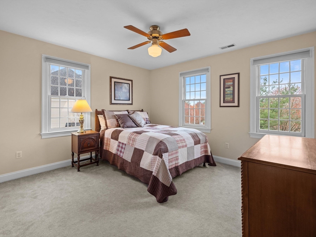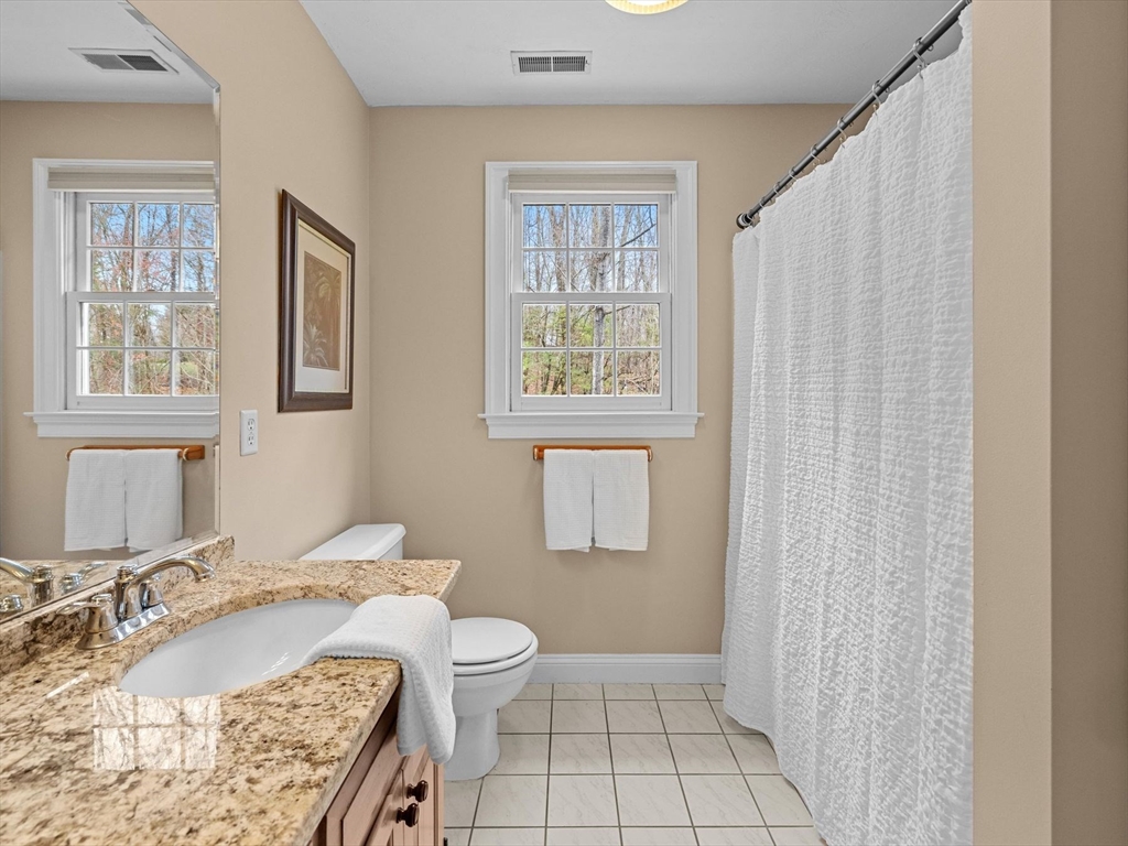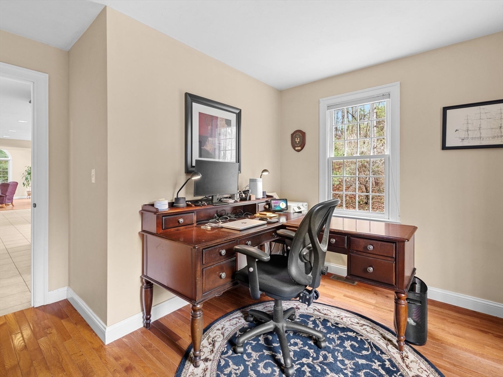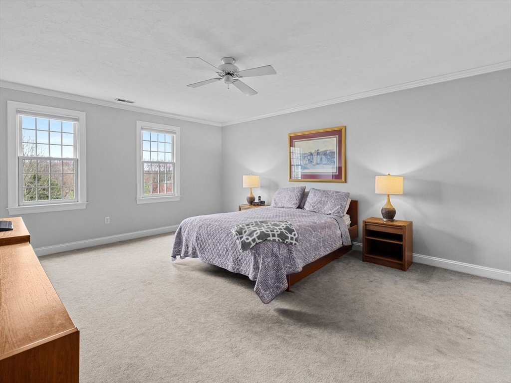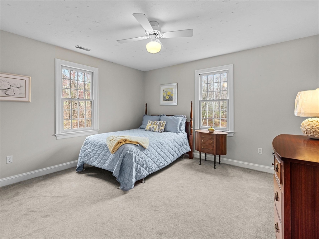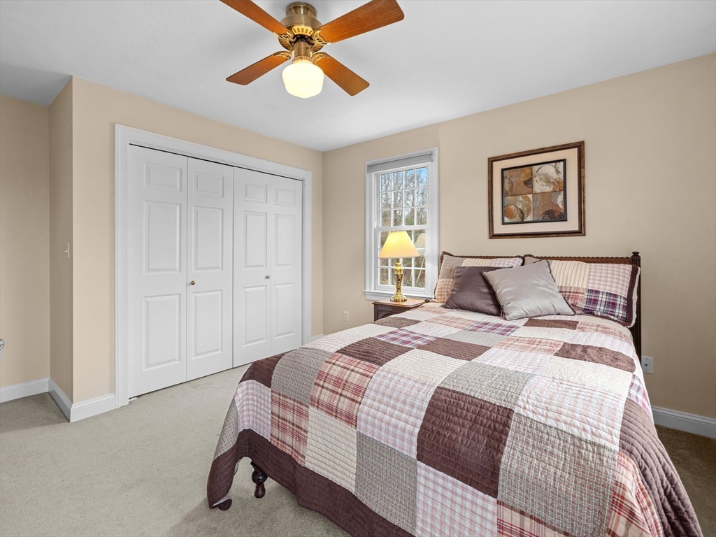 Welcome to the highly sought-after Uhlman Farms Birchwood Village neighborhood. Offered by its original owners, this lovely 4 bedroom colonial is located on a quiet cul-de-sac surrounded by conservation land featuring an open space with gazebo. Once inside, you will appreciate hardwood floors throughout most of the 1st floor and the generously sized kitchen with cherry cabinets and granite counters. It opens into a 24'x24' cathedral ceiling family room. Two atrium doors lead to a large private sundeck. The living room & formal dining room appointed with crown molding & wainscoting are welcoming spaces for dinner guests. A private home office and half bathroom with laundry complete the first floor. The second floor has 4 bedrooms and a hallway full bath with double vanities. The front-to-back primary suite has a large walk-in closet & an oversized full bathroom with whirlpool tub and fully-tiled shower stall. The property is furnished with natural gas heat, town sewer & water.