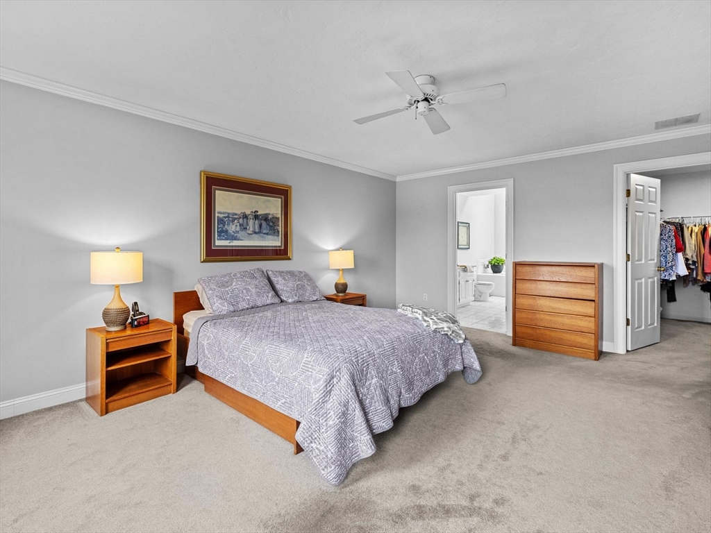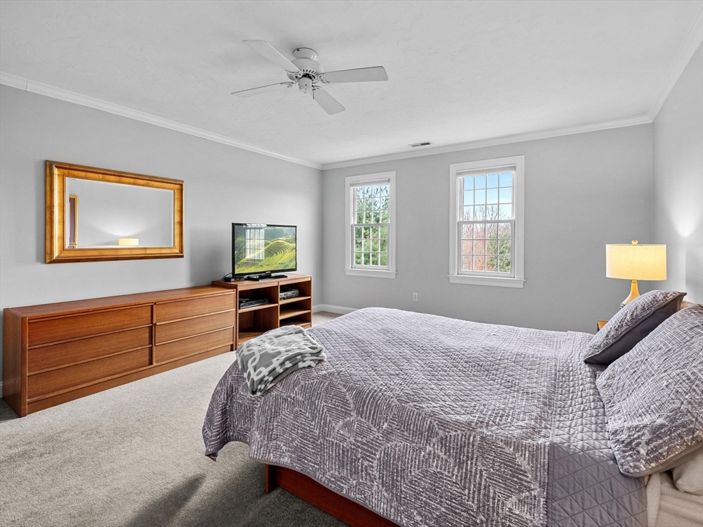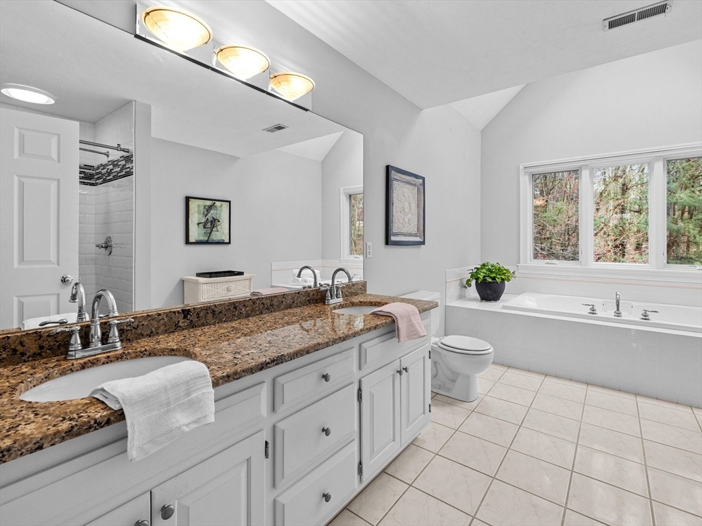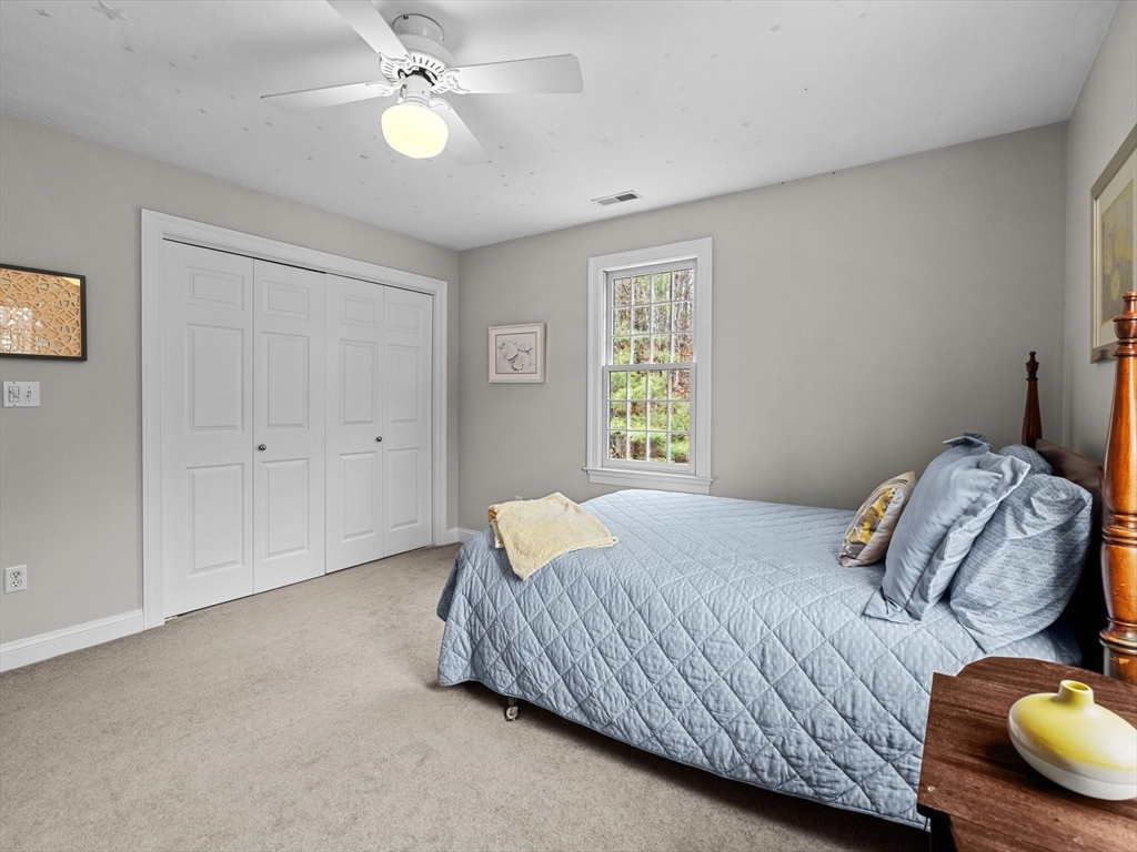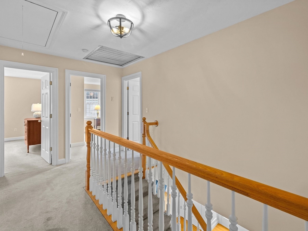 Welcome to the highly sought-after Uhlman Farms Birchwood Village neighborhood. Offered by its original owners, this lovely 4 bedroom colonial is located on a quiet cul-de-sac surrounded by conservation land featuring an open space with gazebo. Once inside, you will appreciate hardwood floors throughout most of the 1st floor and the generously sized kitchen with cherry cabinets and granite counters. It opens into a 24'x24' cathedral ceiling family room. Two atrium doors lead to a large private sundeck. The living room & formal dining room appointed with crown molding & wainscoting are welcoming spaces for dinner guests. A private home office and half bathroom with laundry complete the first floor. The second floor has 4 bedrooms and a hallway full bath with double vanities. The front-to-back primary suite has a large walk-in closet & an oversized full bathroom with whirlpool tub and fully-tiled shower stall. The property is furnished with natural gas heat, town sewer & water.