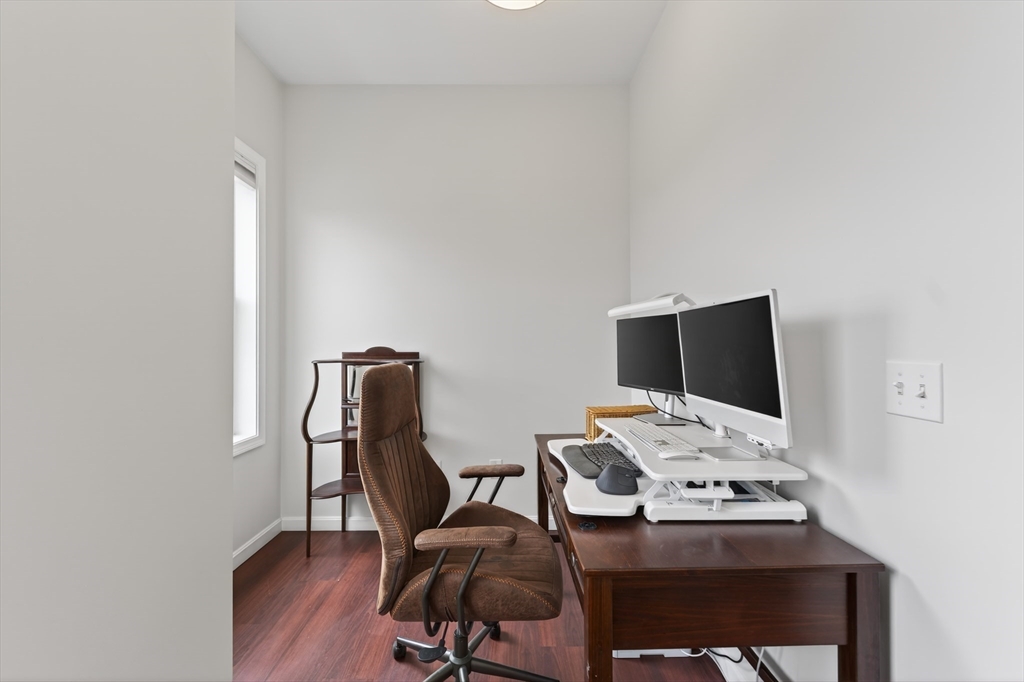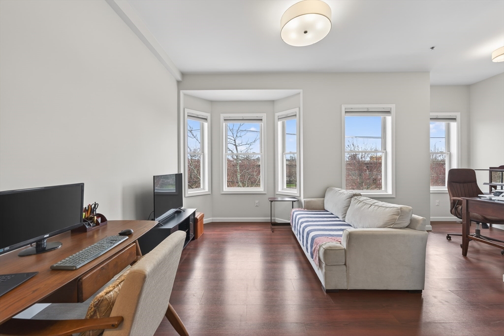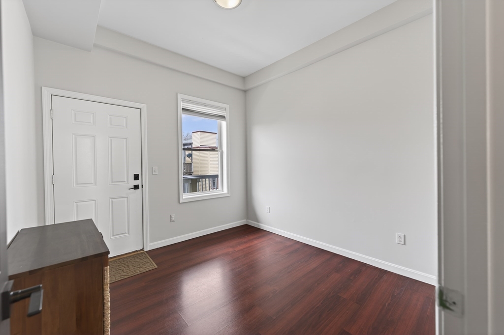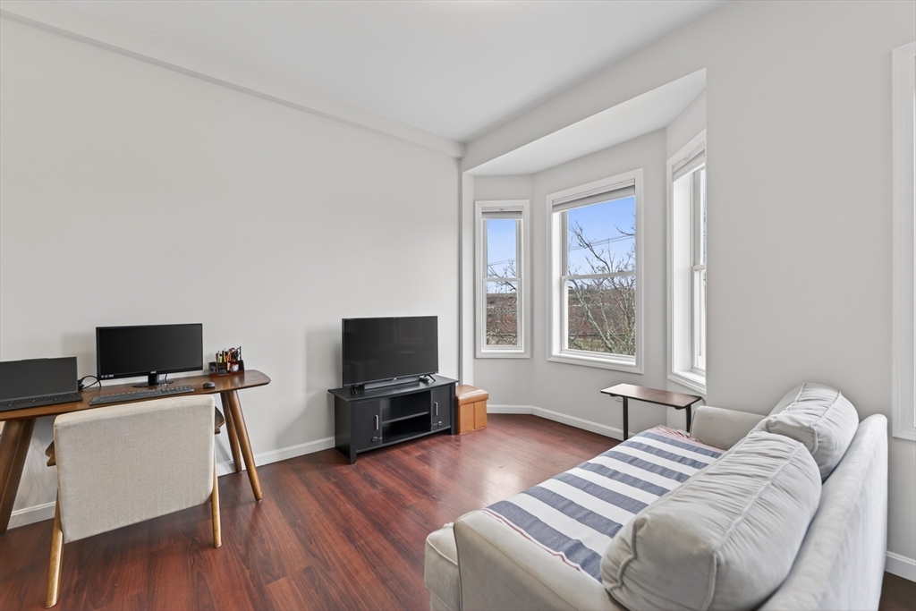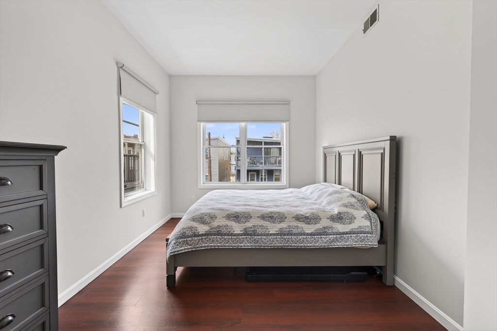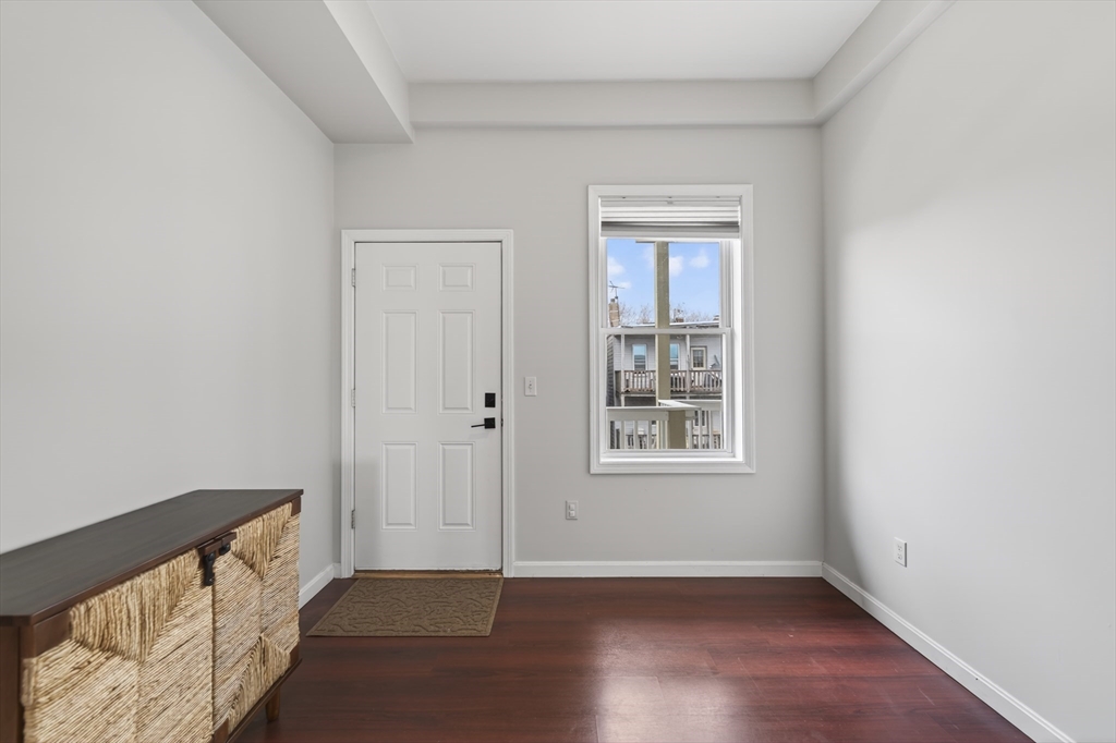 Penthouse living at Bremen Park Condominiums — 1 of only 3 top-floor units with roof rights & crystal clear downtown skyline views. Sun-drenched corner unit boasts 4 oversized south-facing windows with unimpeded park views, Carrara grigio quartz waterfall kitchen, Beacon Hill-style bay windows & private outdoor patio. Near 10' ceilings, central A/C, smart home systems, in-unit W/D & full appliance package. Deeded parking included. Renovated in 2021 & meticulously maintained. Steps from Airport T, easy Pike/93 access & the Boston Globe-featured "Heart of the Ocean" mural.