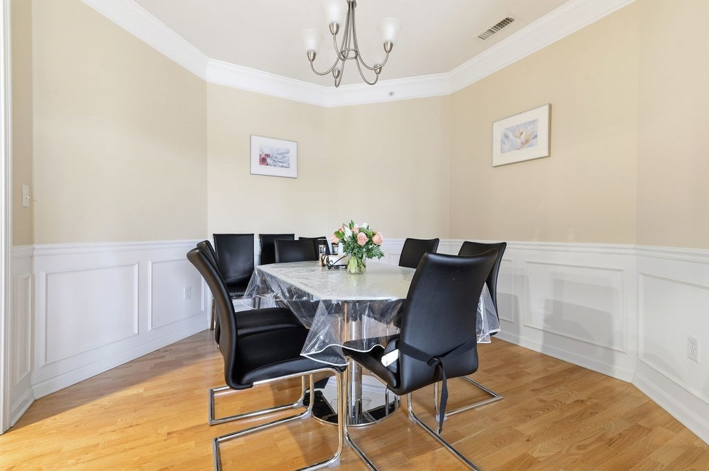 Impeccable and impressive top floor unit at Jonathan's Landing...light and bright with eat-in kitchen, octagon shaped dining room, jacuzzi tub in spacious primary br, new carpeting in brs, hw floors, new tile kitchen backsplash...lovely crown molding and wainscoating, newer heating, large laundry room, community amenities include walking trails, clubhouse, pool, fitness rooms, close to MBTA red line...