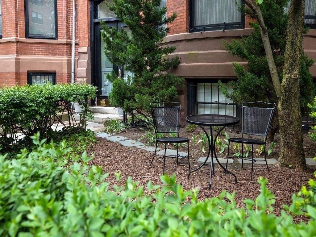 Gorgeous floor-through 1 br condo, nestled between Dartmouth and Exeter Streets in Boston's historic BackBay neighborhood. This garden level condo is a hidden gem, boasting 1033 sq ft of living space, a large, step down, open living room with 12 ft ceilings and exposed brick, with extra nook for dining table or work from home desk. Enjoy a spacious, updated kitchen with breakfast bar, stainless steel appl, gas range and walk-in pantry. Bedroom is huge with decorative FP, ample closet space, and full size windows welcoming plenty of sun. Bathroom also generous with deep tub. Added bonuses include extra closet/stge space, gleaming hardwood floors, washer dryer hook up, and common free laundry in building, on same level as unit. Steps to Charles River, BackBay shopping and restaurants, public transportation, public gardens and more. Avail June 1.