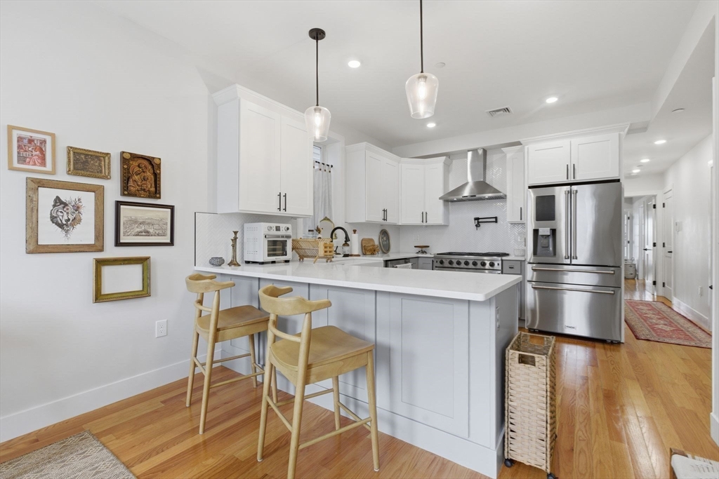 Rare opportunity to own a Luxury Brownstone in Jeffries Point. Remodeled in 2023, this residence boasts impressive ceiling heights, elegant finishes, and is soaking in Western sunlight. The chef’s kitchen, equipped with a farmhouse sink and stainless steel six-burner stove, seamlessly leads to dining and living rooms, perfect for entertaining guests. Features 2 beds & 2 full baths, incl. a king-sized primary with en suite bath, modern matte black finishes, double-sink hardwood vanity, and spacious walk-in shower. An additional BONUS four-season space is perfect for an office, nursery, or gym. With walk-in closets, a coat closet, and private 200 sq. ft. basement storage, there is no shortage of space. Convenient in-unit laundry. PRIME LOCATION! 0.2 Miles from Maverick MBTA Station, with easy access to downtown and beaches. Walking distance to Airport without any noise and blocks away from Eastie’s best restaurants and skyline views, incl. Piers Park, Cunard's Tavern, and A Quiet Few.